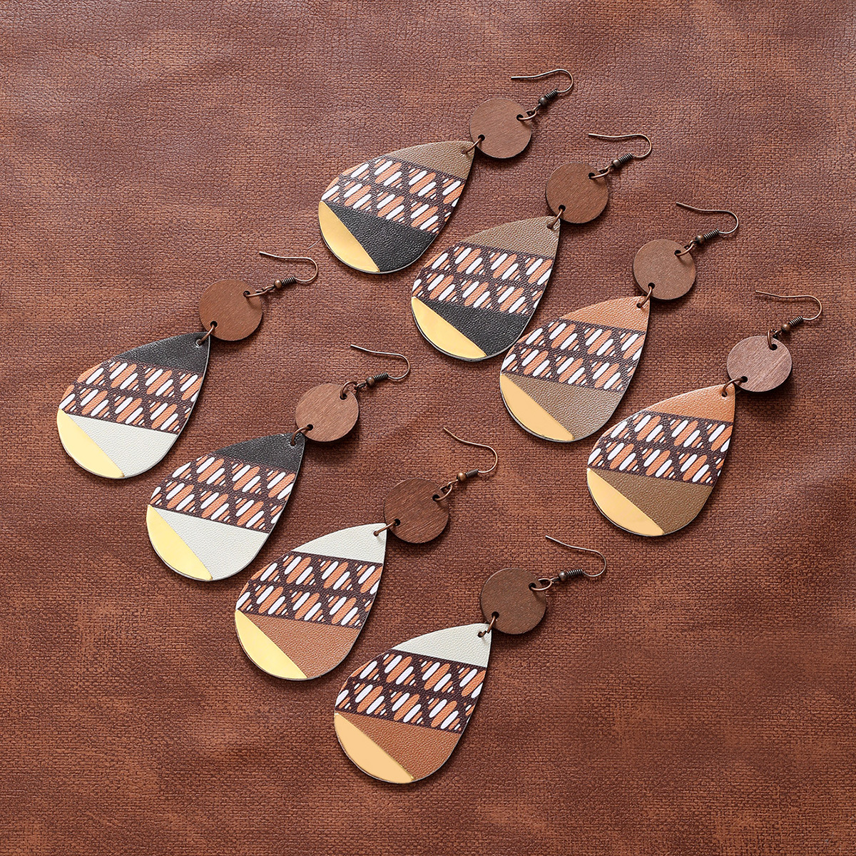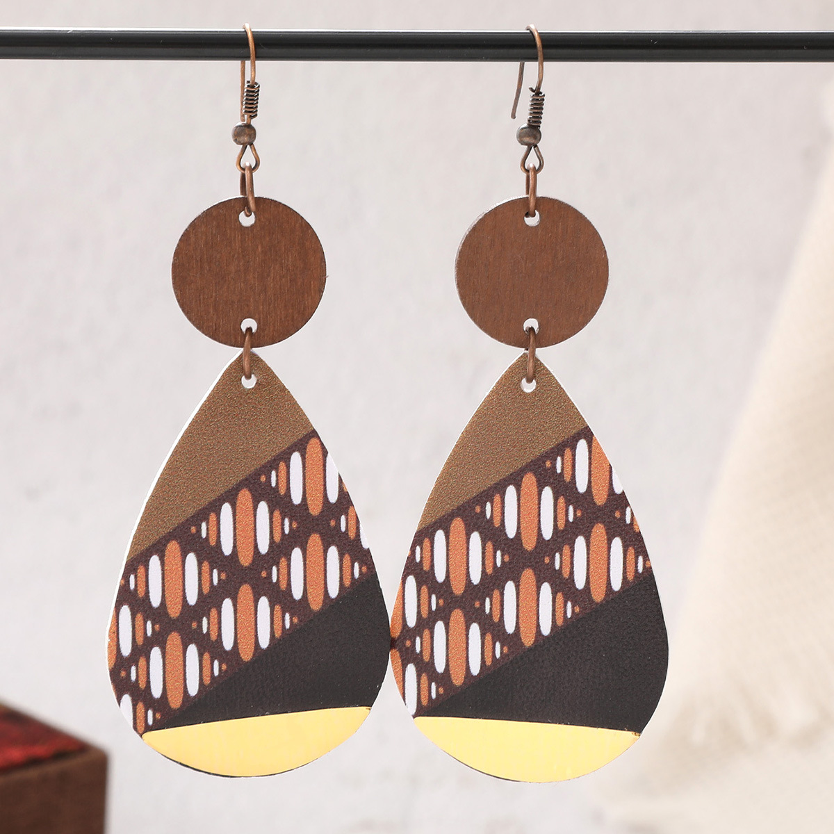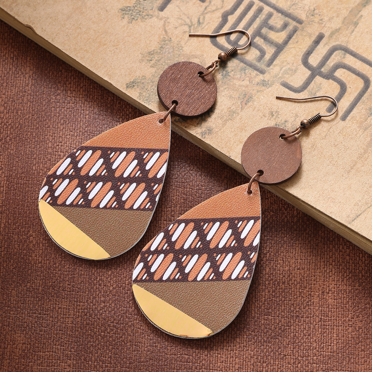 | nameOriginal | Water drop leather wood chip earrings retro style Jewelry earrings wooden color matching cross-border European and American female Amazon |