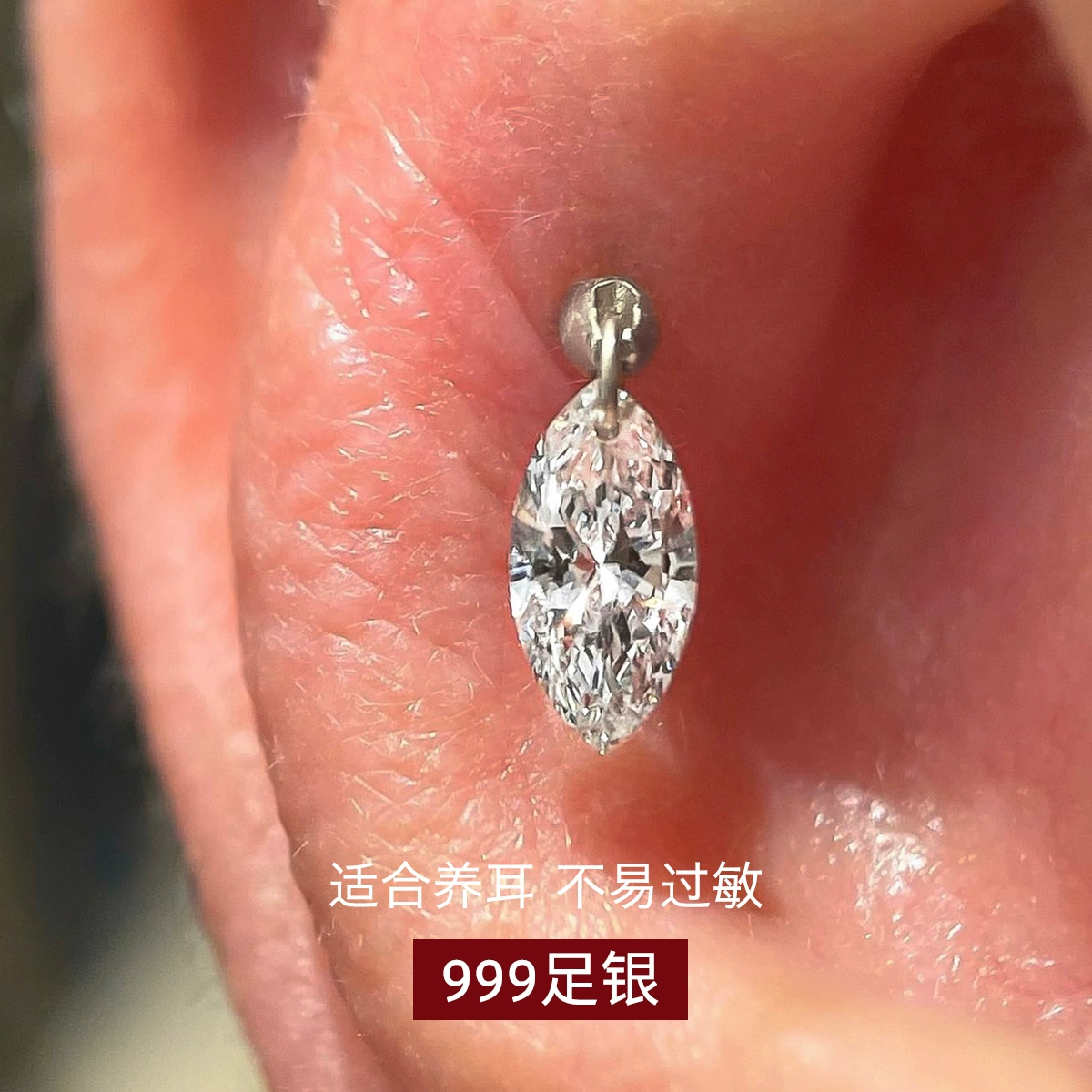 | nameOriginal | Water drop zircon 999 sterling silver earrings, ear bone nails, high-end silver earrings, niche design, pierced earrings for women |