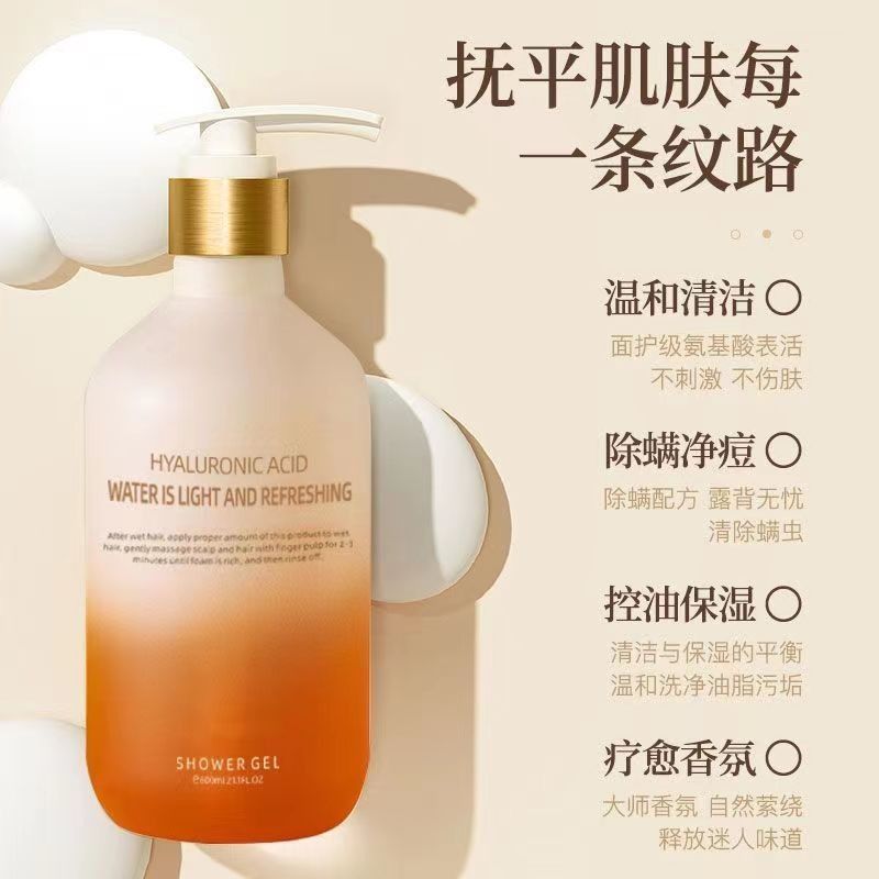 | nameOriginal | Water Light hyaluronic acid shower gel lasting fragrance oil control mite removal shampoo shower gel hair conditioner suit genuine goods |