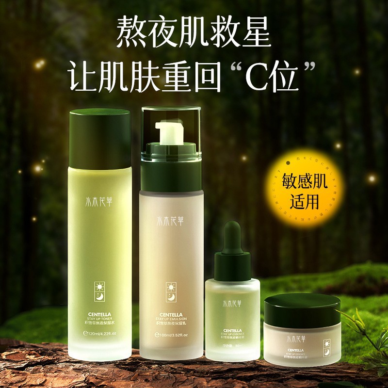 | nameOriginal | Water wood flowers and plants Centella asiatica set student female skin care moisturizing four-piece set factory direct supply can be a generation of hair |