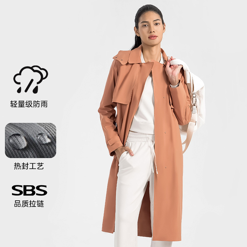 | nameOriginal | Waterproof and Windproof SBS Zipper Detachable Hooded Jacket Buckle Waist Heat Sealing Lapel Long Women's Windbreaker |