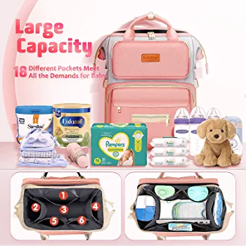 The bag features three insulated bottle holders pockets made of aluminum foil and nano flame retardant material, which provides remarkable heat preservation effect, ensuring that your baby can enjoy warm milk at any time when outside. The milk insulated section is suitable for bottles ranging from 5 to 10oz.