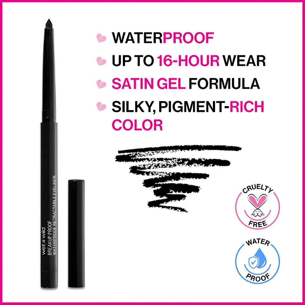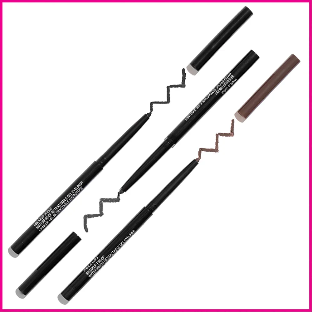 Waterproof black eyeliner with a retractable gel formula that dries quickly and lasts up to 16 hours. The ultra-fine brush tip pen is smudge-resistant and breakup-proof.