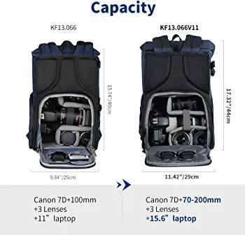 K&F Concept Multi-Functional Camera Backpack 600D Polyester Waterproof Photography Equipment Travel Bag for Tripod DSLR Camera and Accessory with Rain Cover