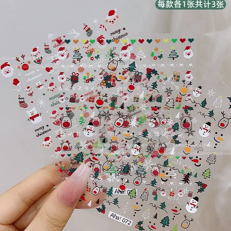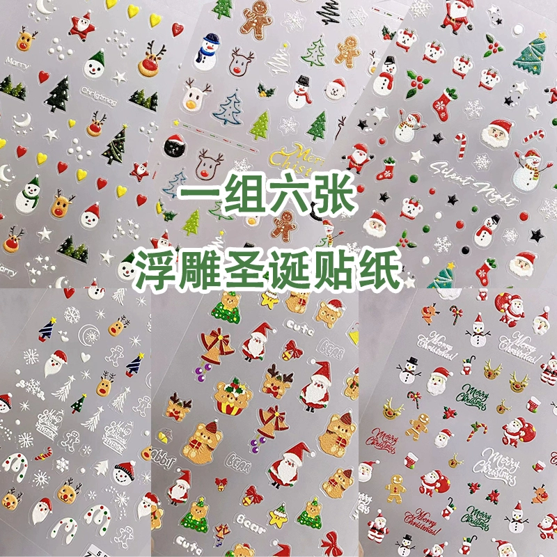 | nameOriginal | Waterproof Christmas embossed nail art Christmas stickers cartoon ins cute snowflake nail color decoration decals |