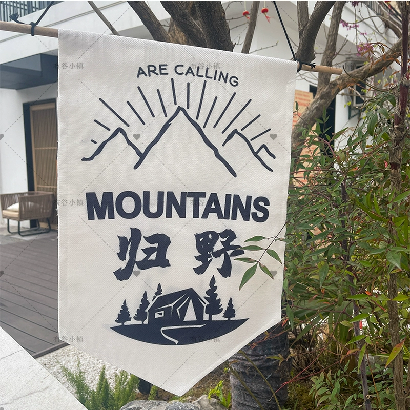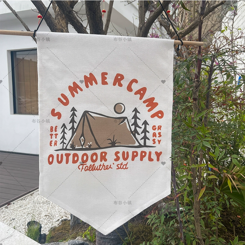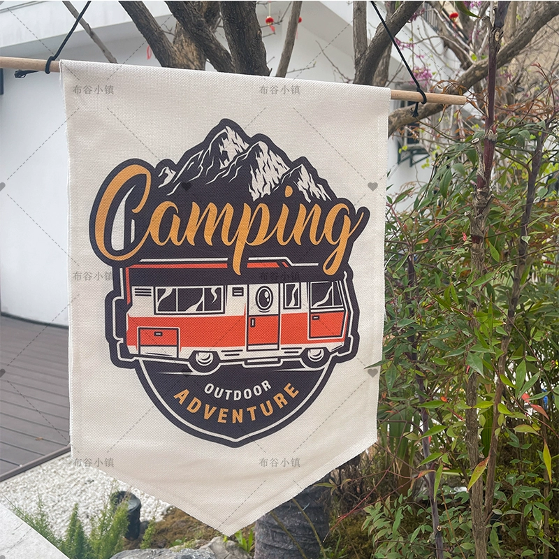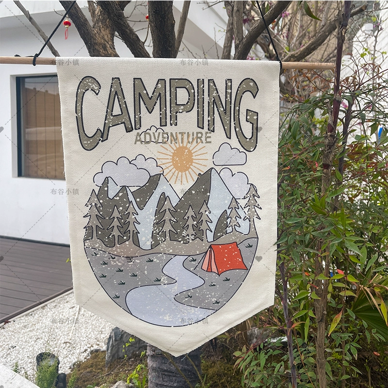 Waterproof linen camping style atmosphere flag outdoor decorative background cloth cotton and linen hanging flag small hanging cloth 35*50cm