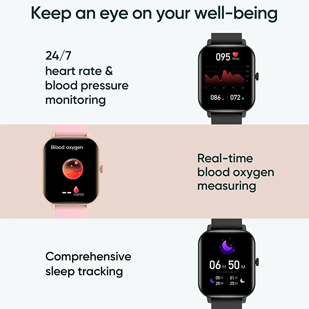 The fitness tracker has a long-lasting battery life of up to 7-10 days and can be quickly recharged in just 20 minutes. It is also designed to be waterproof, so you can wear it confidently in all kinds of wet conditions, from drizzles to intensive sweat or even while swimming in the pool.