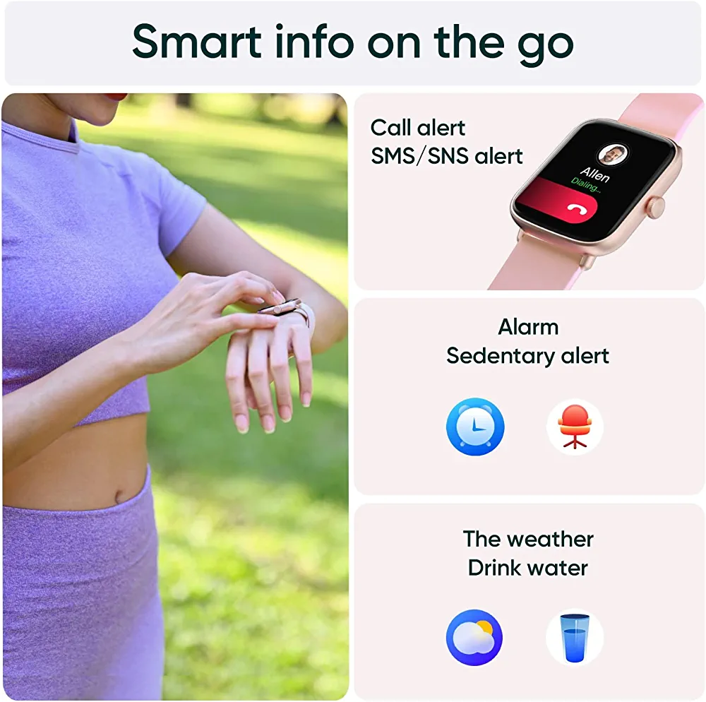 Stay connected with calls, alarms, text notifications, and other handy apps like weather and calendar. This smart watch offers great compatibility with almost all smart phones, including iOS and Android.