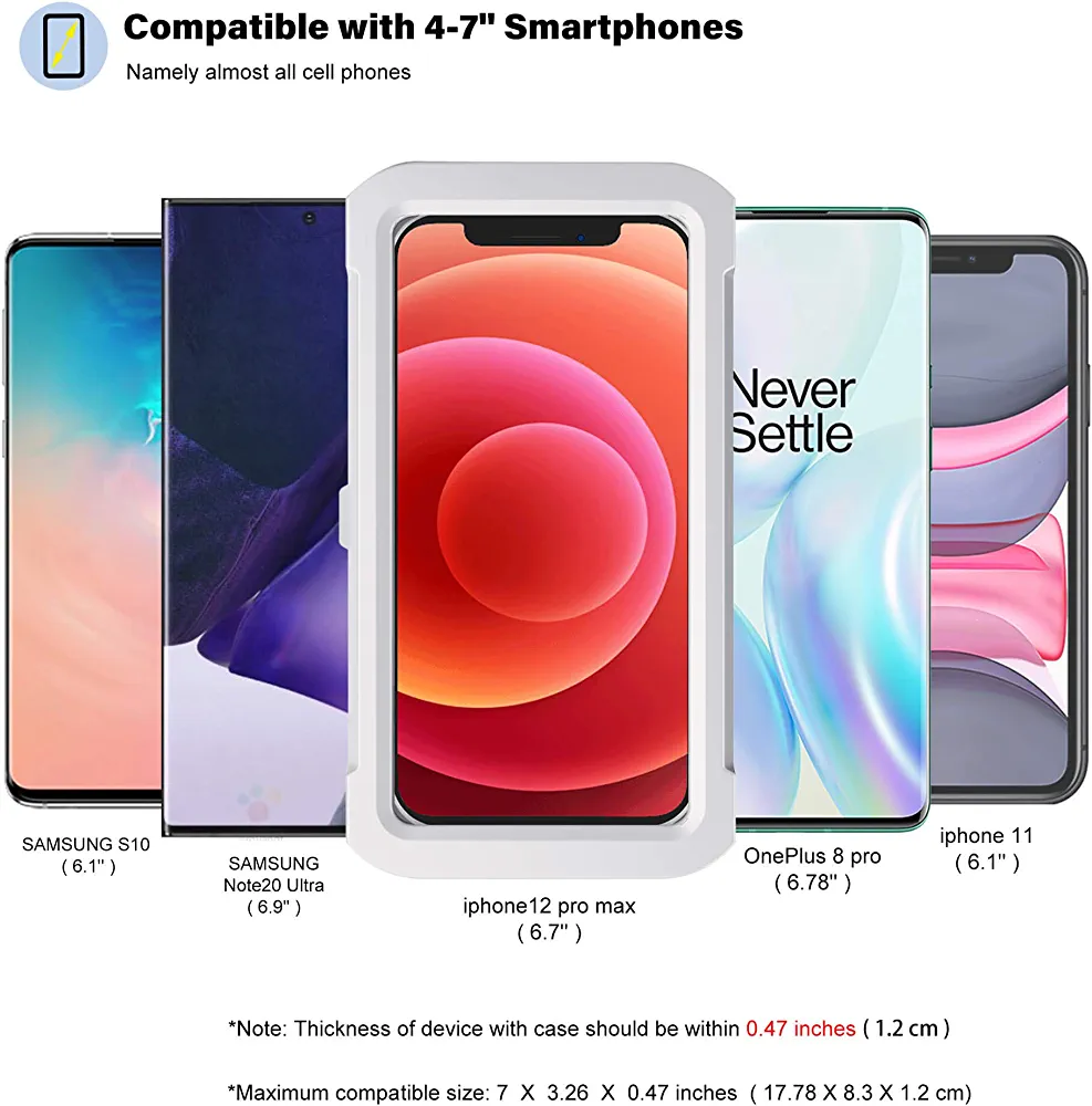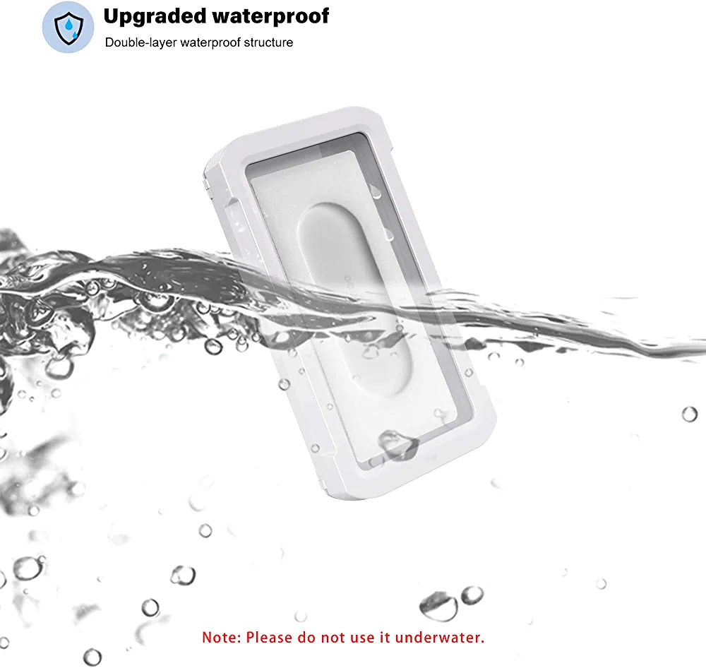Waterproof Shower Phone Holder with 360° Rotation, for Mirror/Wall Mounting in Shower, Bathroom, Bathtub or Kitchen. Universal White Shower Accessory.