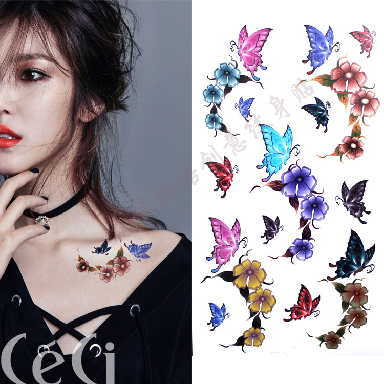 Waterproof Tattoo Sticker Women's Long-lasting Colorful Butterfly Flower Sexy Tattoo Sticker Tattoo Sticker Small Fresh