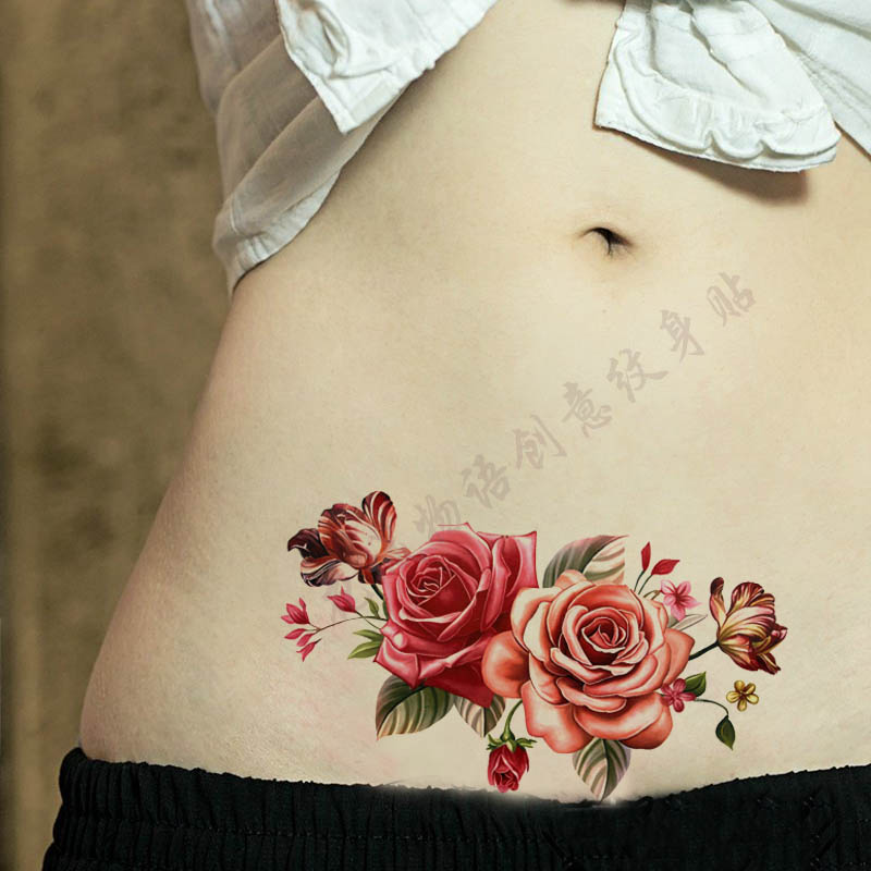 | nameOriginal | Waterproof tattoo stickers for women long-lasting rose color large flower tattoo stickers to cover scars photo abdomen back |