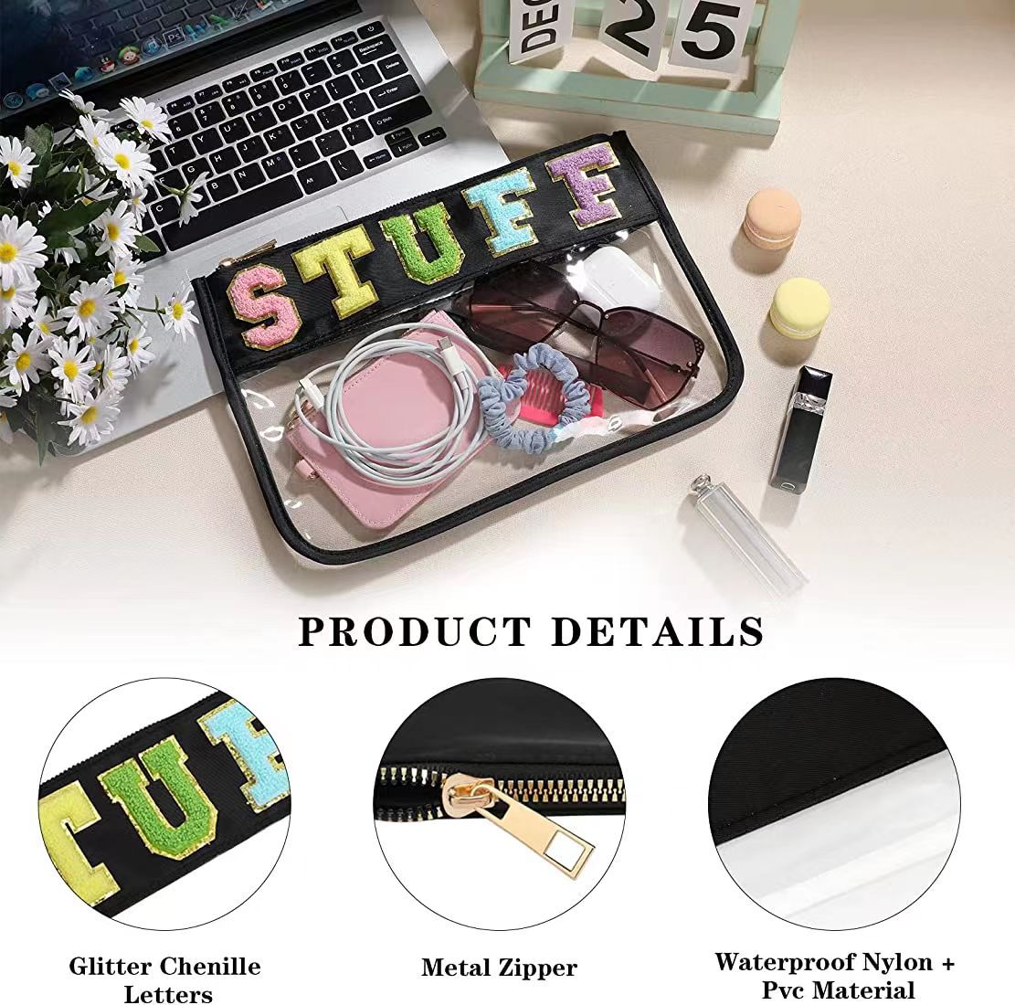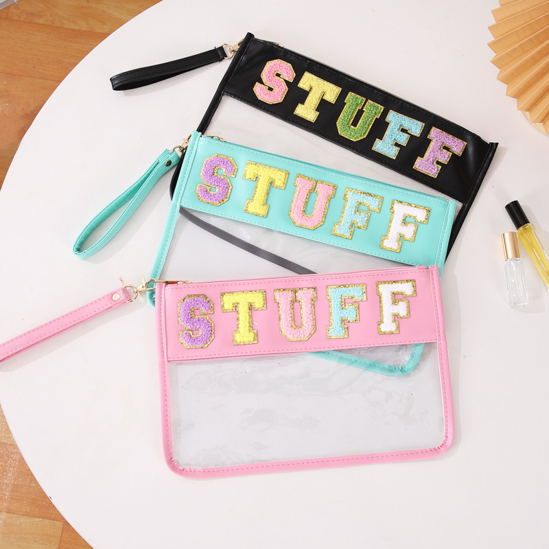 | nameOriginal | Waterproof transparent PVC embroidered letter cosmetic bag high-looking large capacity travel wash bag convenient cosmetic bag |