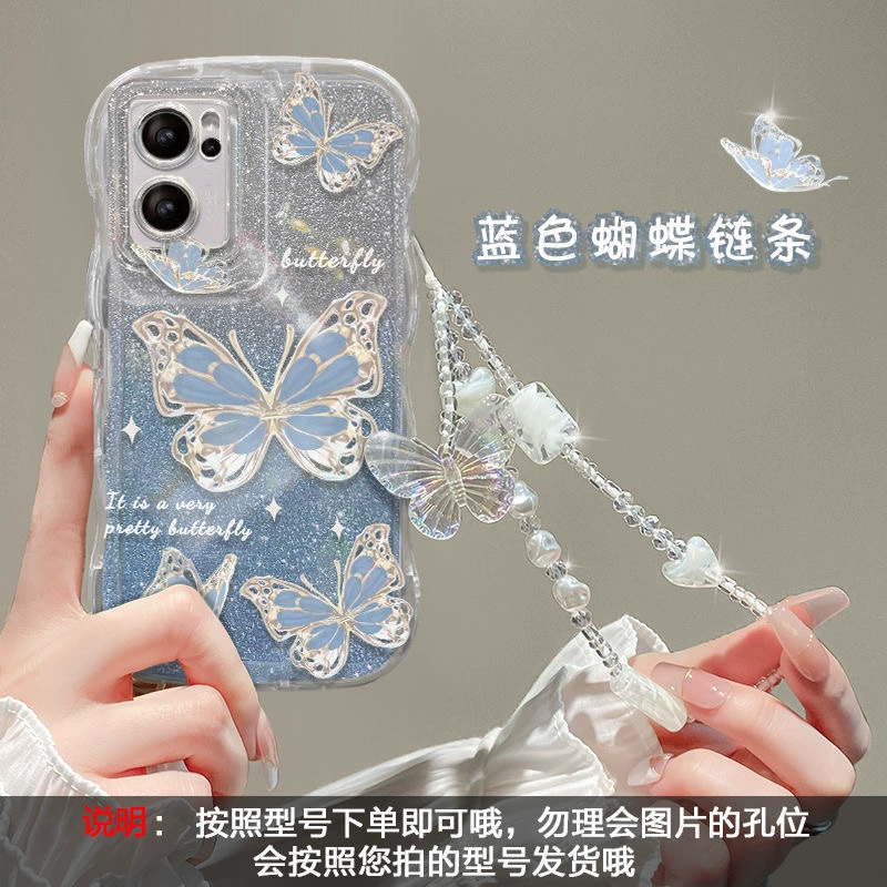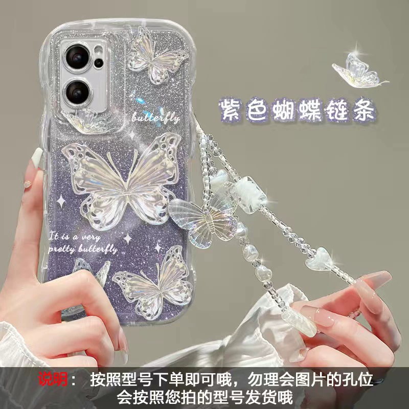 Wavy cushion butterfly bracelet Opporeno10 mobile phone case Reno9/8/7/6Pro+new 5K female FindX6 cold wind k10x transparent A1pro soft shell A96/a97/a58/a56s