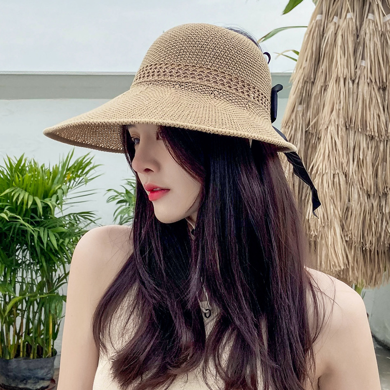 Wave edge empty top hat female summer outdoor sun protection sun hat travel Beach sun hat roll big brim straw hat