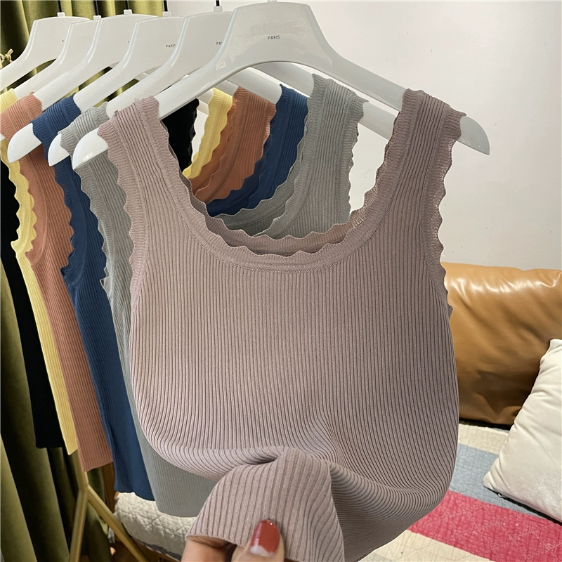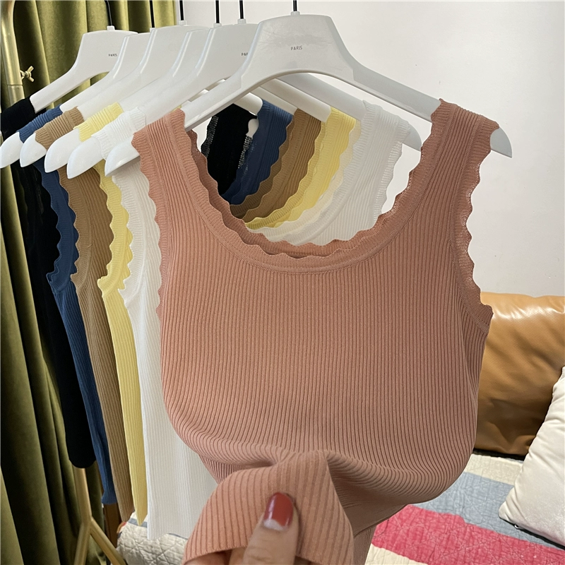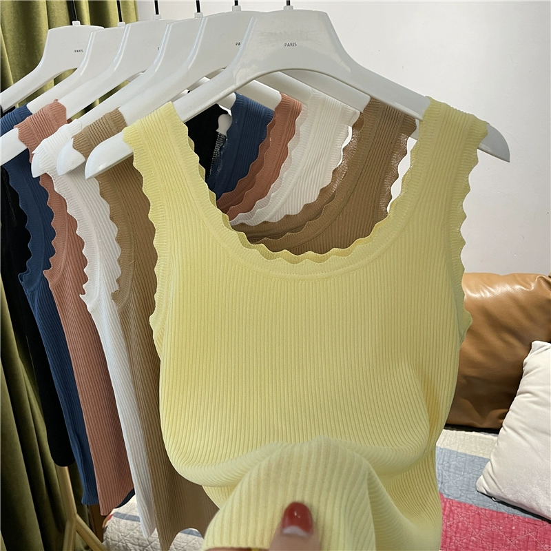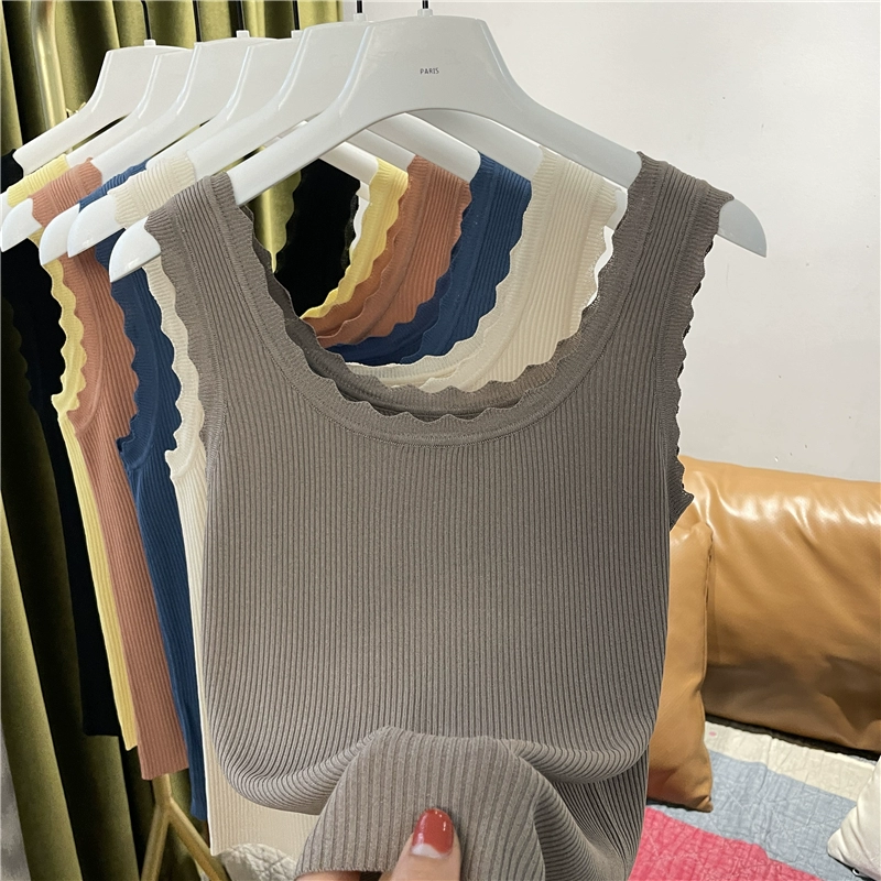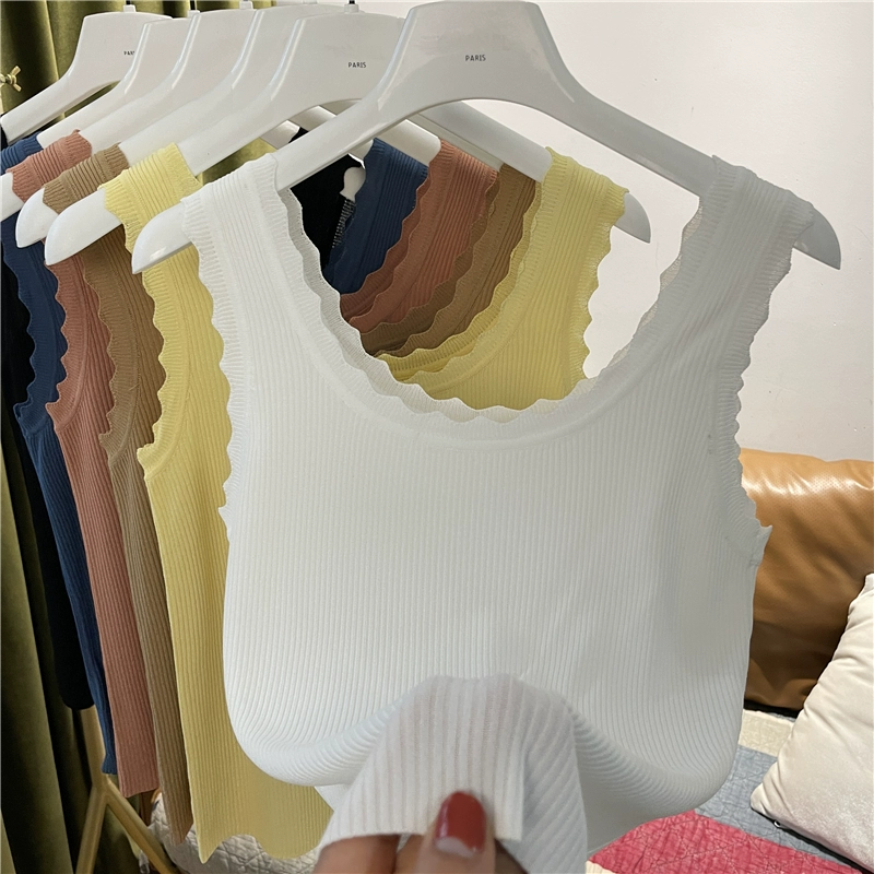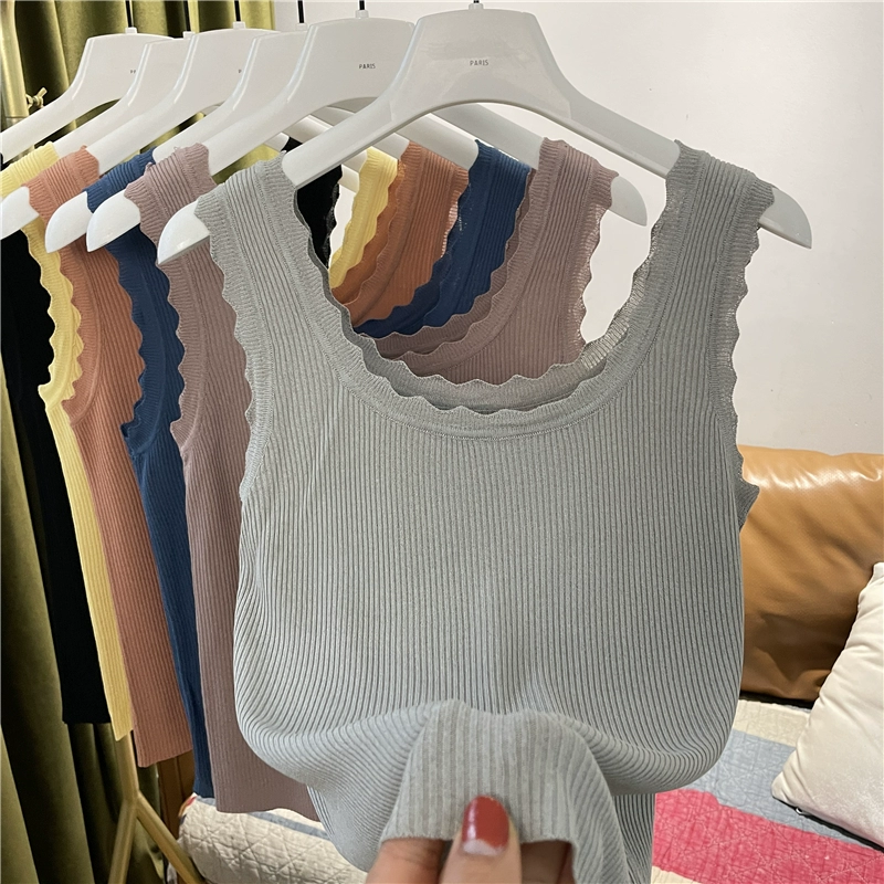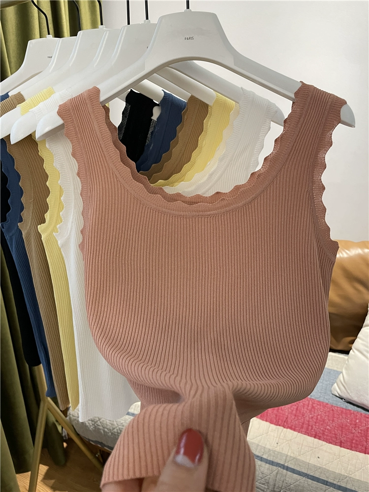 | nameOriginal | Wave edge pullover solid color sleeveless slim knitted vest |