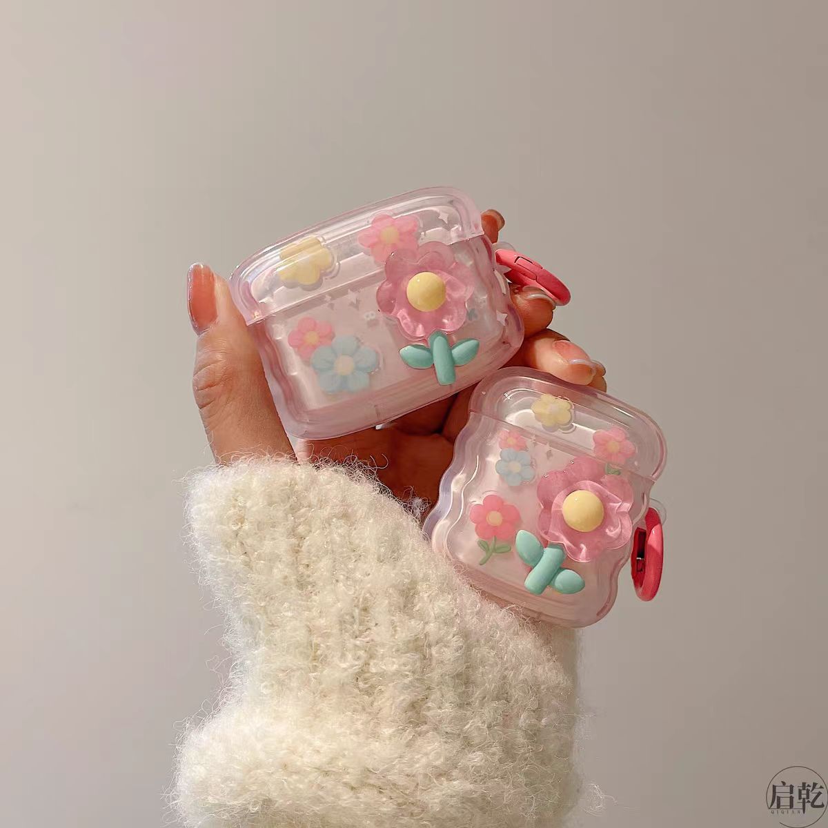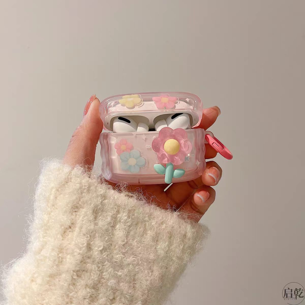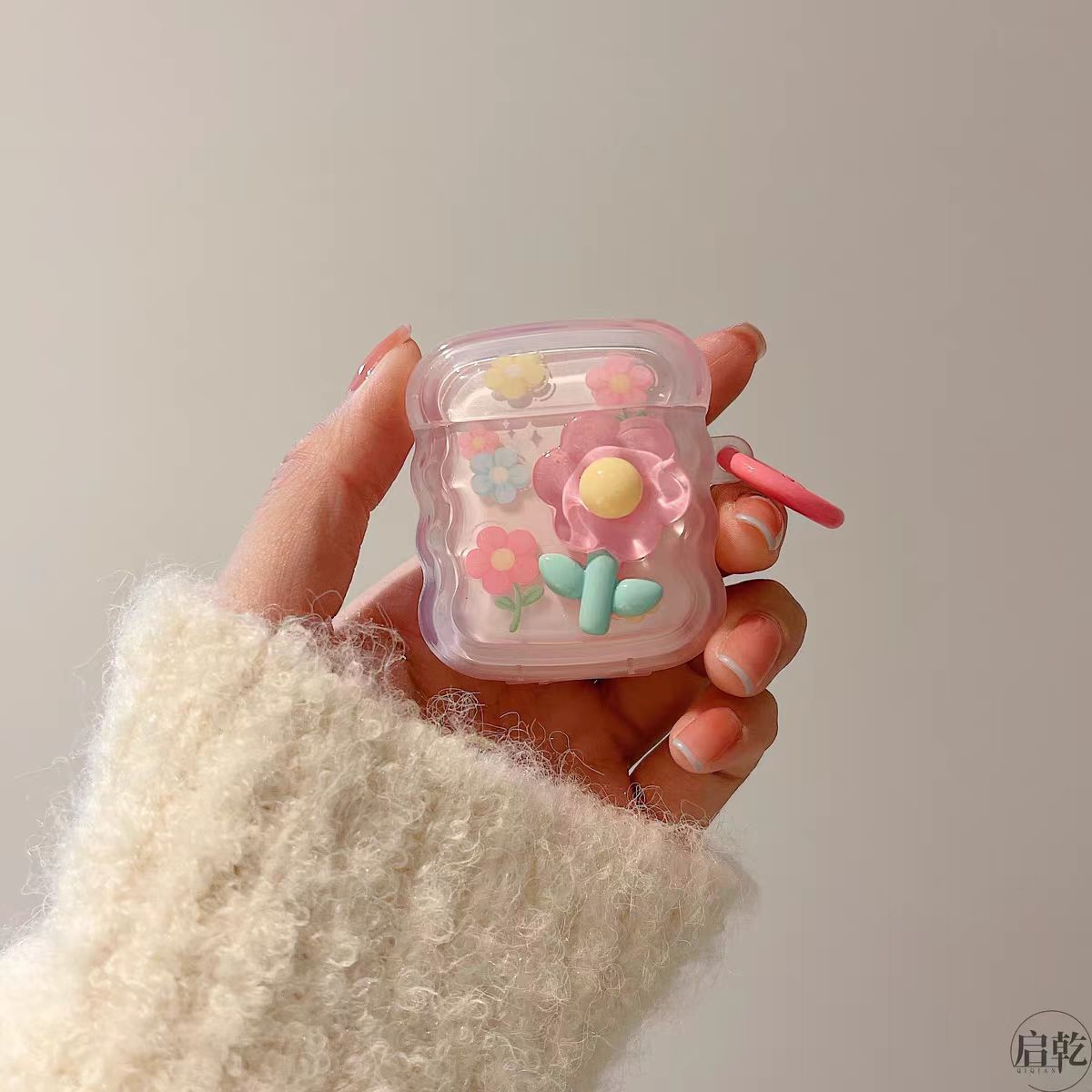 Wave edge three-dimensional flower airpods3 earphone protective shell 2pro Apple Bluetooth silicone soft shell niche foreign trade