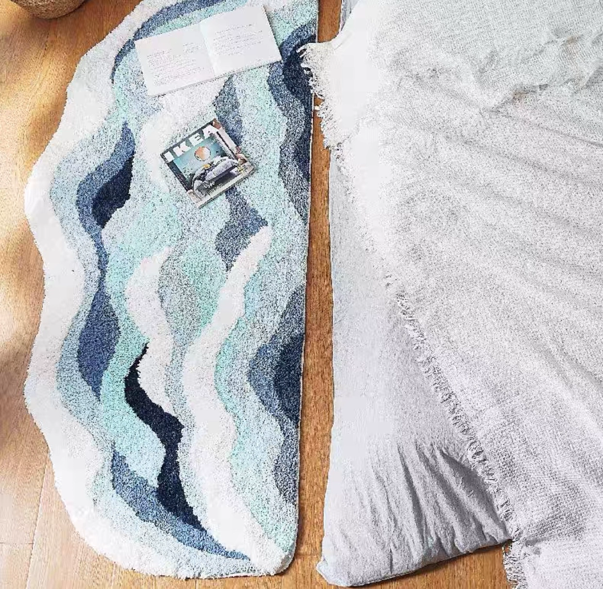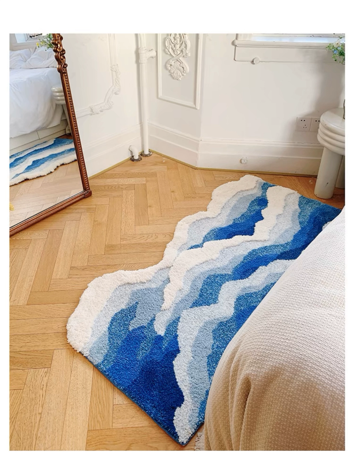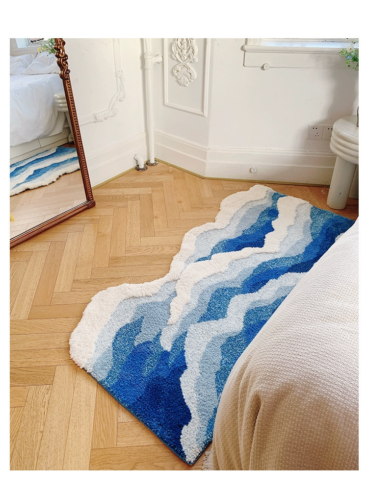 | nameOriginal | Wave ins style blue special-shaped bedside blanket bedroom living room bathroom light luxury coffee table sofa blanket foot pad floor mat |