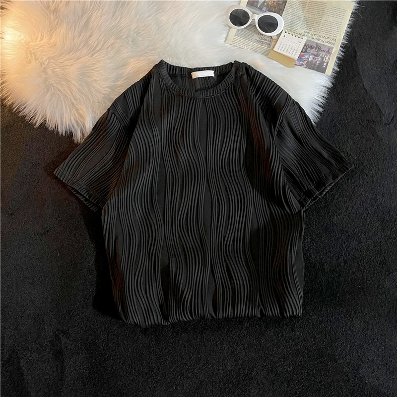 Wavy pattern versatile couples with high street short-sleeved T-shirts