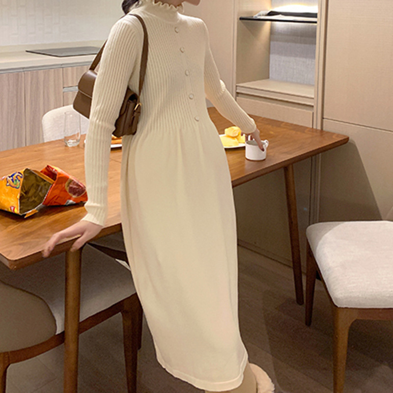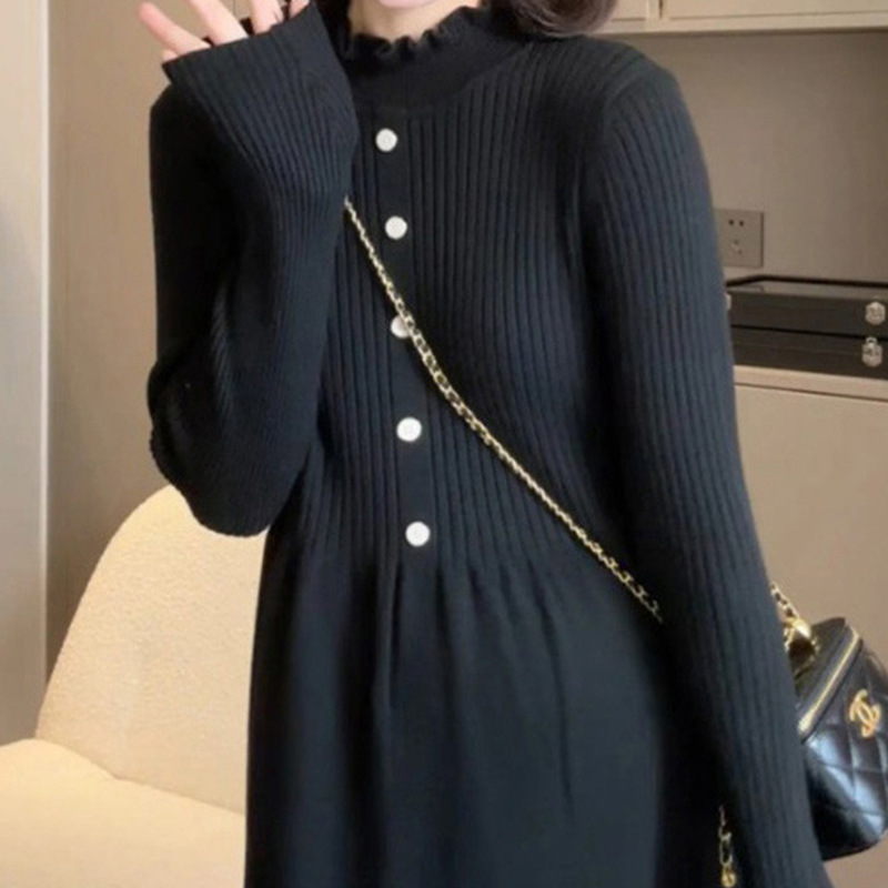 | nameOriginal | Wavy Half-high Neck Women's Loose Slim-fit Pregnant Women's Sweater Dress Autumn and Winter Korean-style plus size Base Knitted dress |