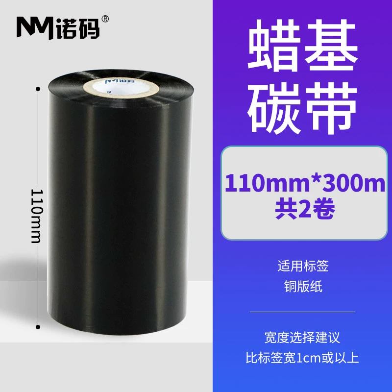 Wax-based mixed-base ribbon roll 50 60 70 80 90 100 110mmX300m barcode printer label paper full resin thermal transfer ribbon roll copper plate self-adhesive clothing wax base