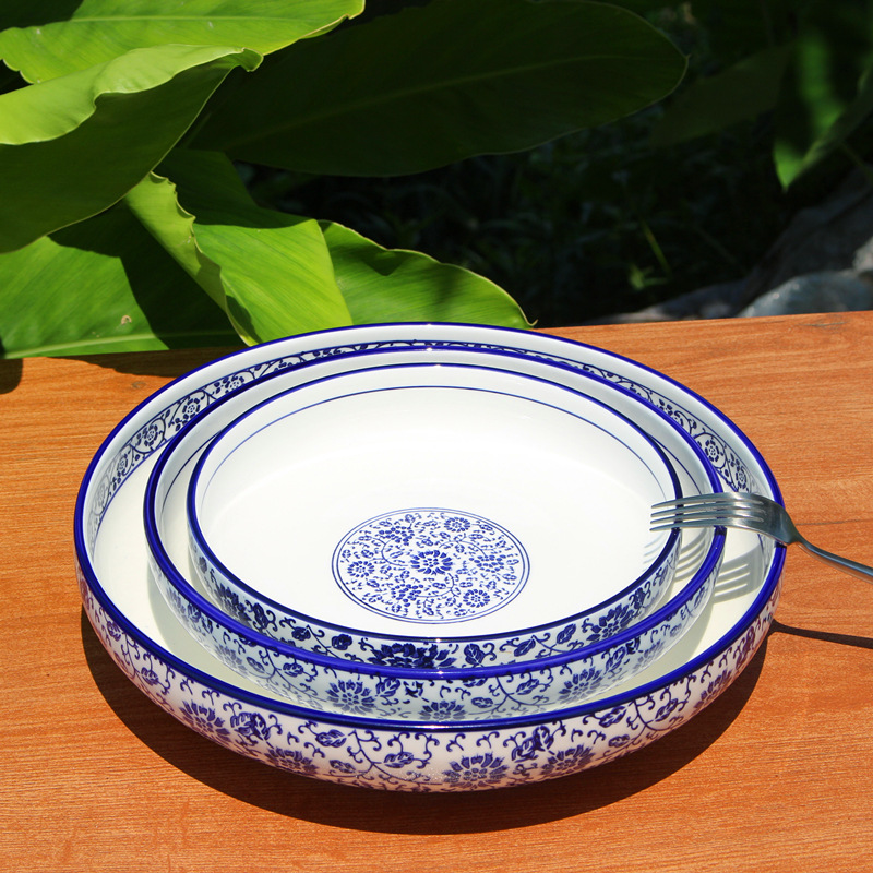 | nameOriginal | WBZ7 blue and white porcelain chopped pepper fish head steamed fish plate underglaze household dish crayfish plate boiled fish bowl plate bubble cake |