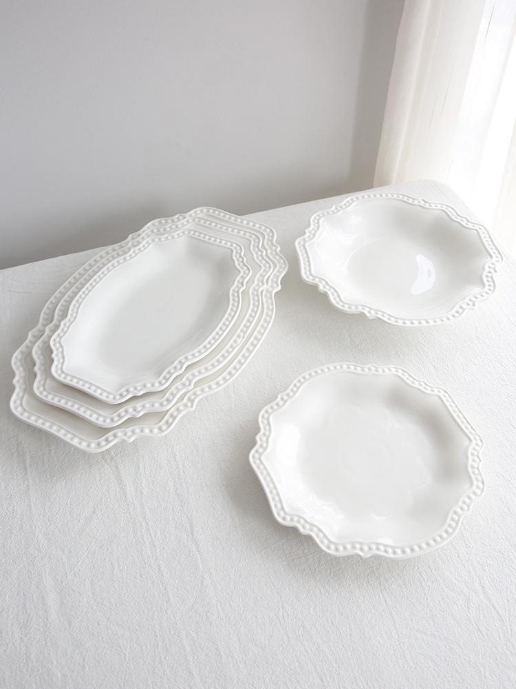 | nameOriginal | WBZ7 French retro ceramic plate fish plate European tableware household plate relief plate snack plate western point  |