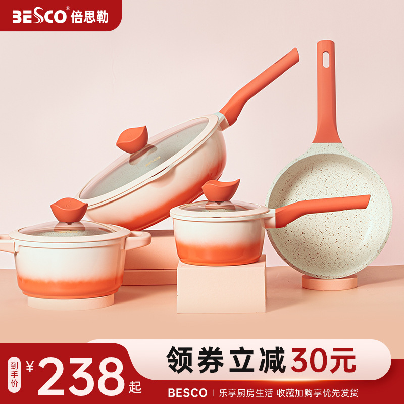 WBZ7 pot suit full set household High-looking non-stick wok kitchenware suit induction cooker gas stove