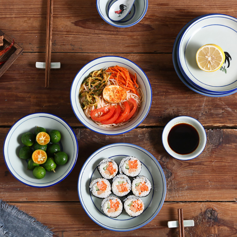 | nameOriginal | WBZ7 Rooster Bowl Underglaze Color Ceramic Household Old-fashioned Nostalgic Retro Chinese Celadon Complete Set of Chicken Bowl and Dish Resistant |