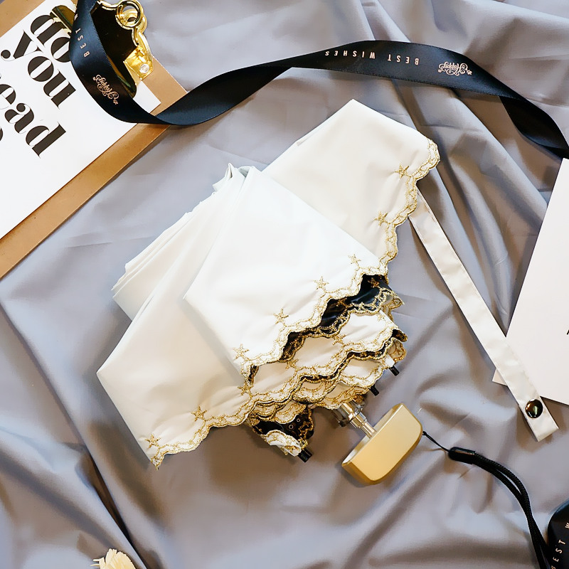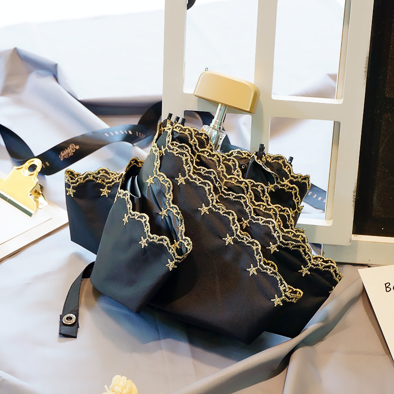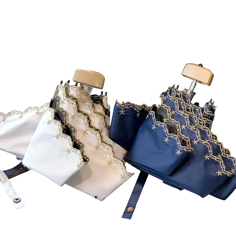 WBZ7 star embroidered sun umbrella super light Mini five-fold umbrella black plastic pocket small umbrella UV-proof female sun umbrella