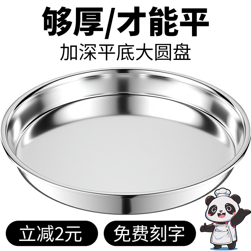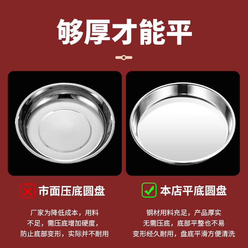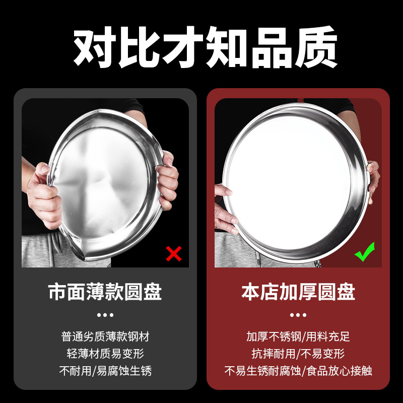 WBZ7 thick stainless steel disc commercial large tray round flat big plate chicken fish head plate crayfish plate