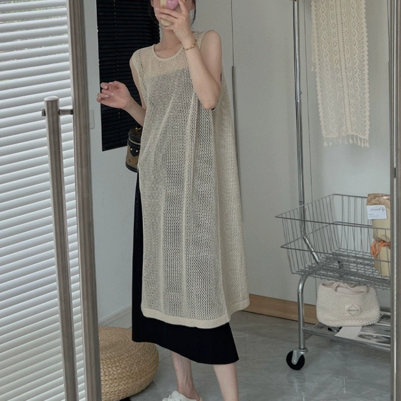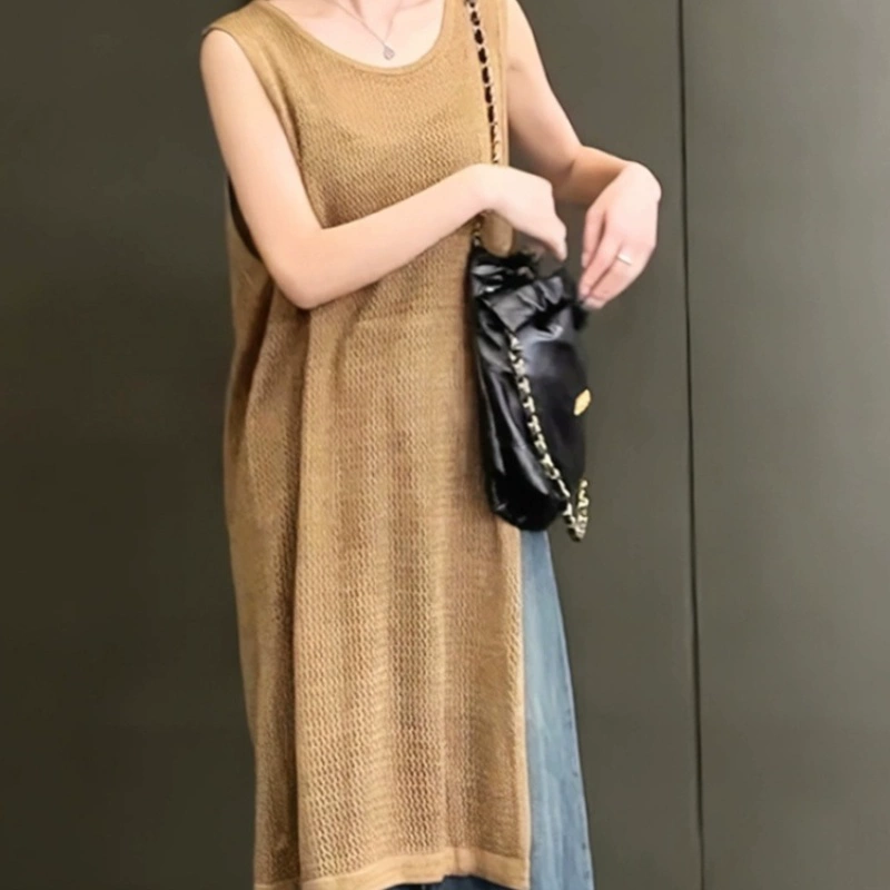 | nameOriginal | Wear an ice silk slit sleeveless midi skirt blouse vest |