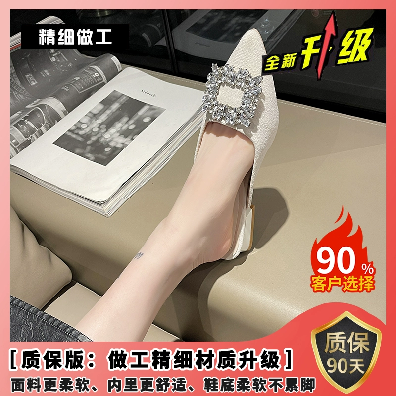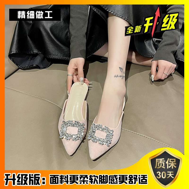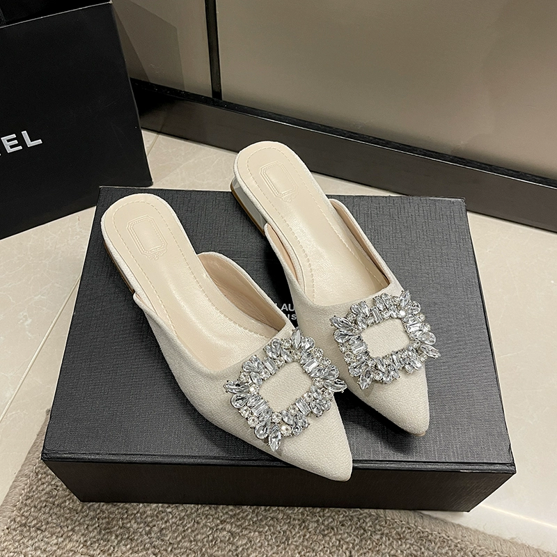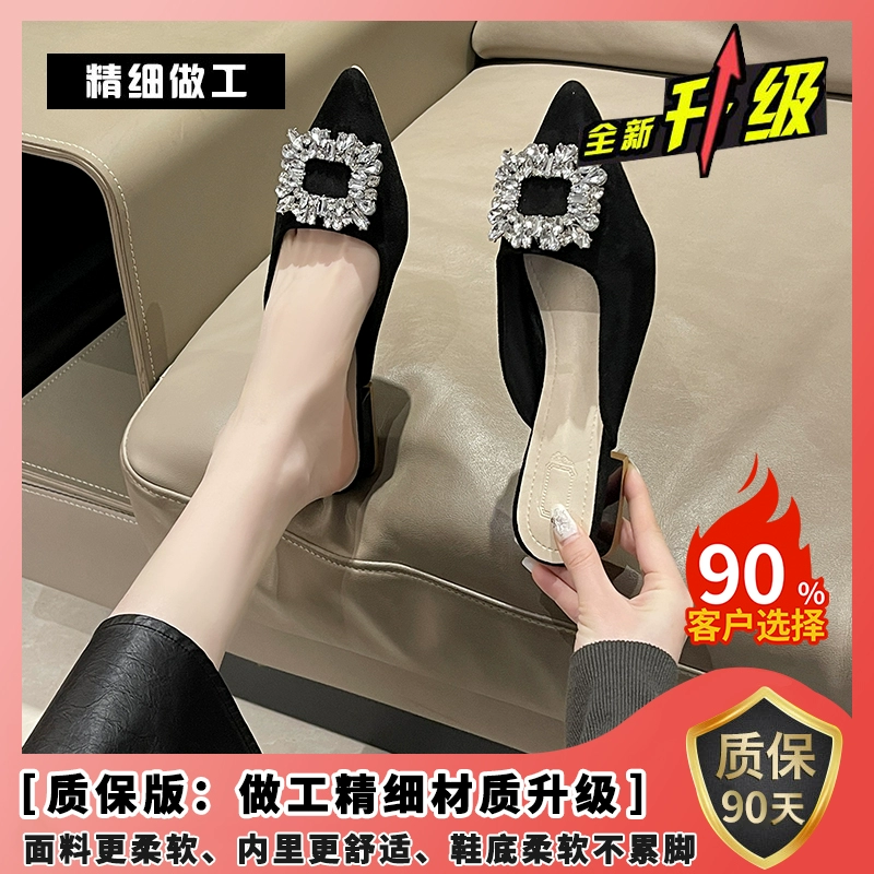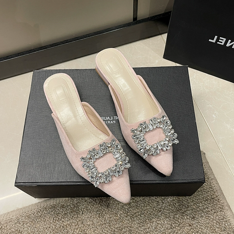 | nameOriginal | Wear French rhinestone pointed toe thick heel half slippers |