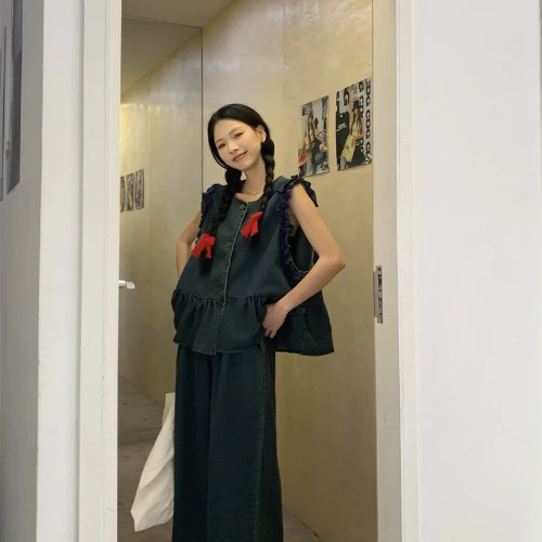 | nameOriginal | Wear jacket and trousers with retro street denim vest |