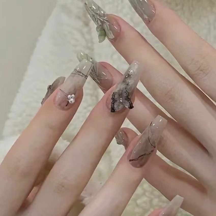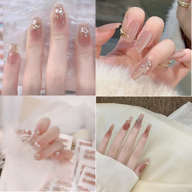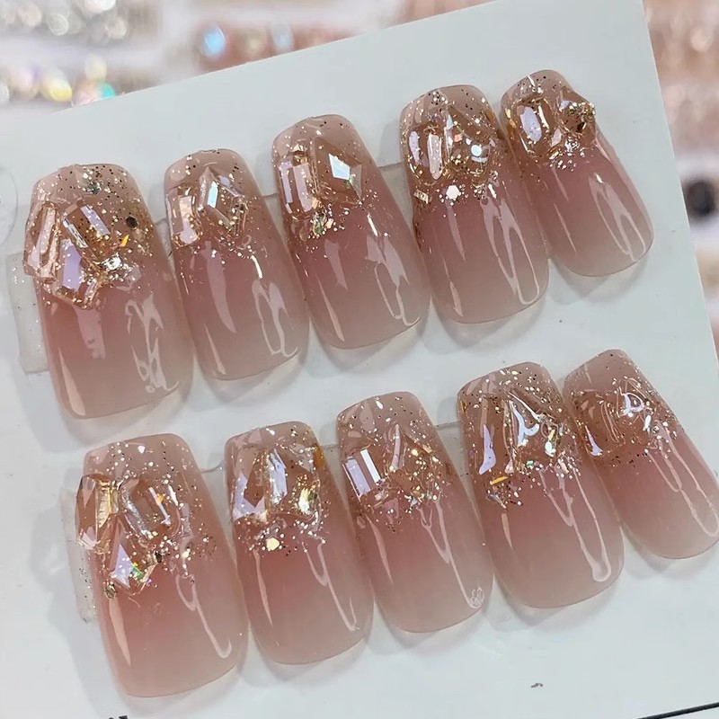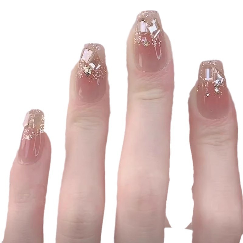| nameOriginal | Wear nail manicure finished nail piece champagne night mid-length bridal wedding nail flash white high-grade detachable |