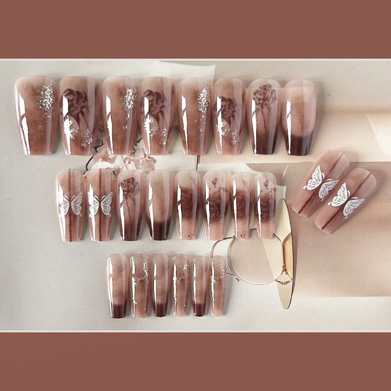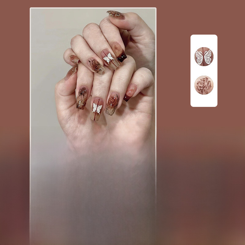 | nameOriginal | Wear nail manicure finished nail piece silent butterfly kiss rose wear nail nail sticker nail white high-grade sense detachable |