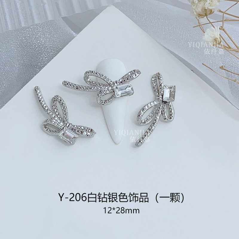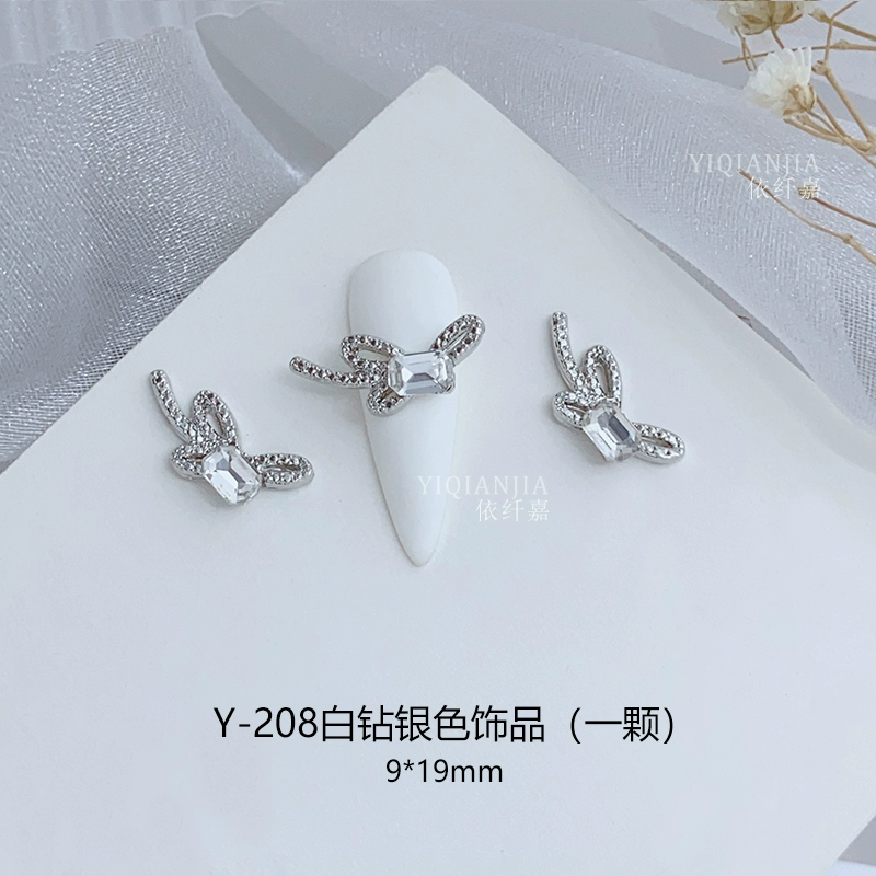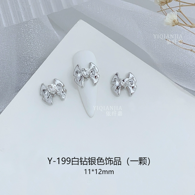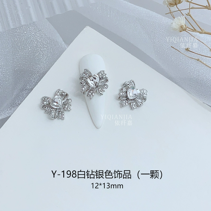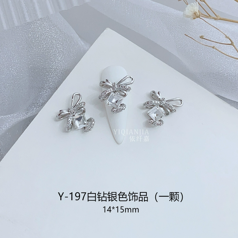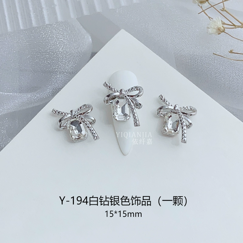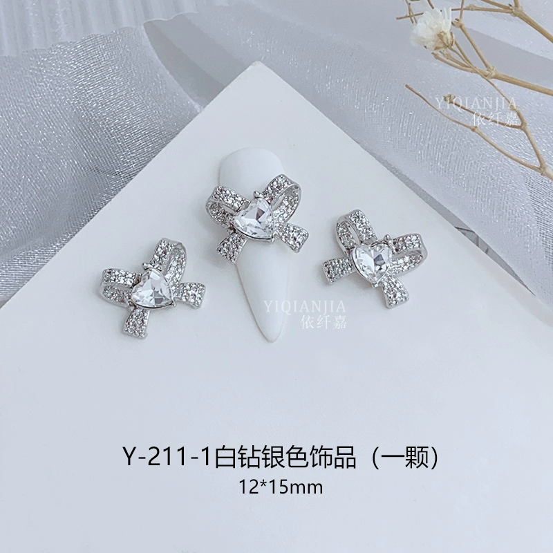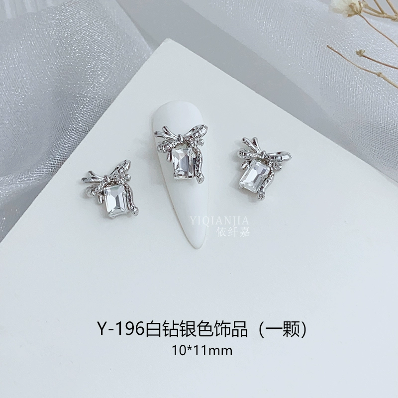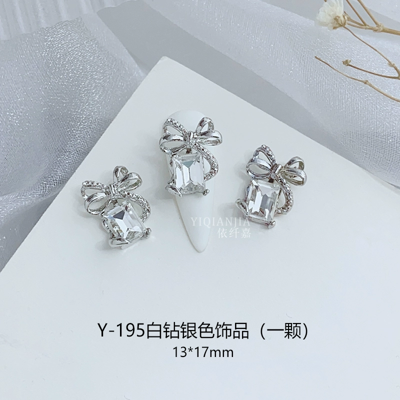 Internet celebrity bow square mouth diamond nail art metal decoration alloy nail patch wear nail accessories love diamond