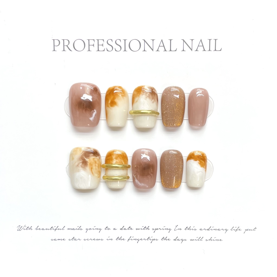 Wear Nails Retro Golden Brown Autumn and Winter Smudged Short Manicure