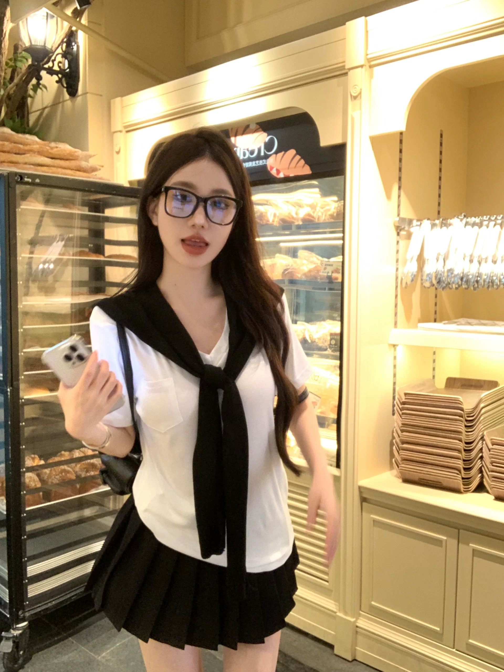 | nameOriginal | Wear suit black pleated skirt knitted shawl |