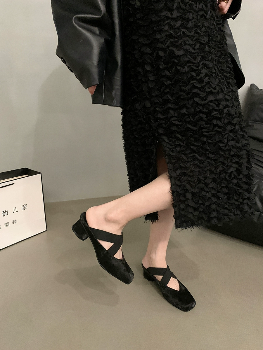 | nameOriginal | Wear summer ballet thick heel square toe half slippers |