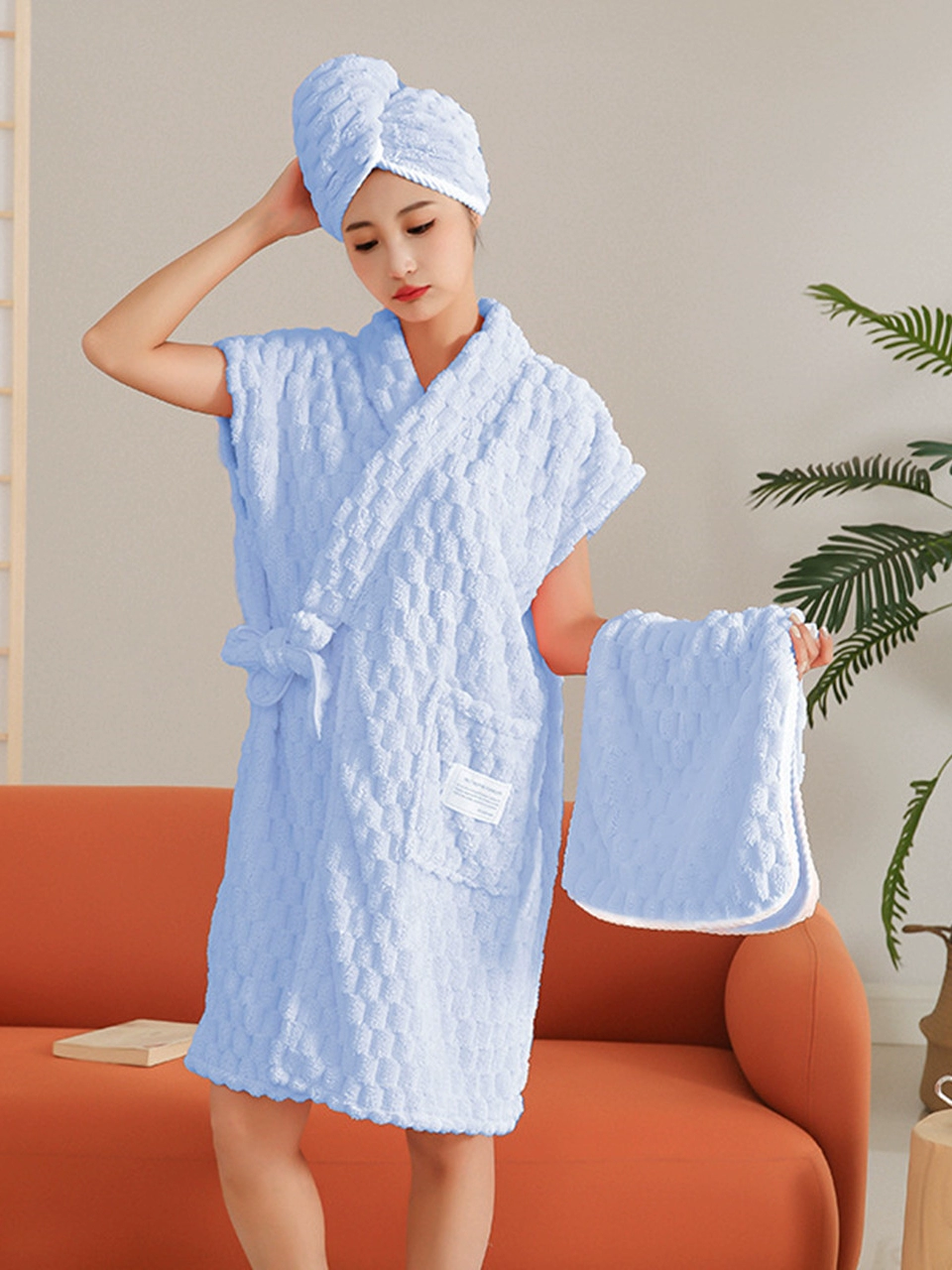 | nameOriginal | Wearable home use pure cotton towel dry hair cap bathrobe |