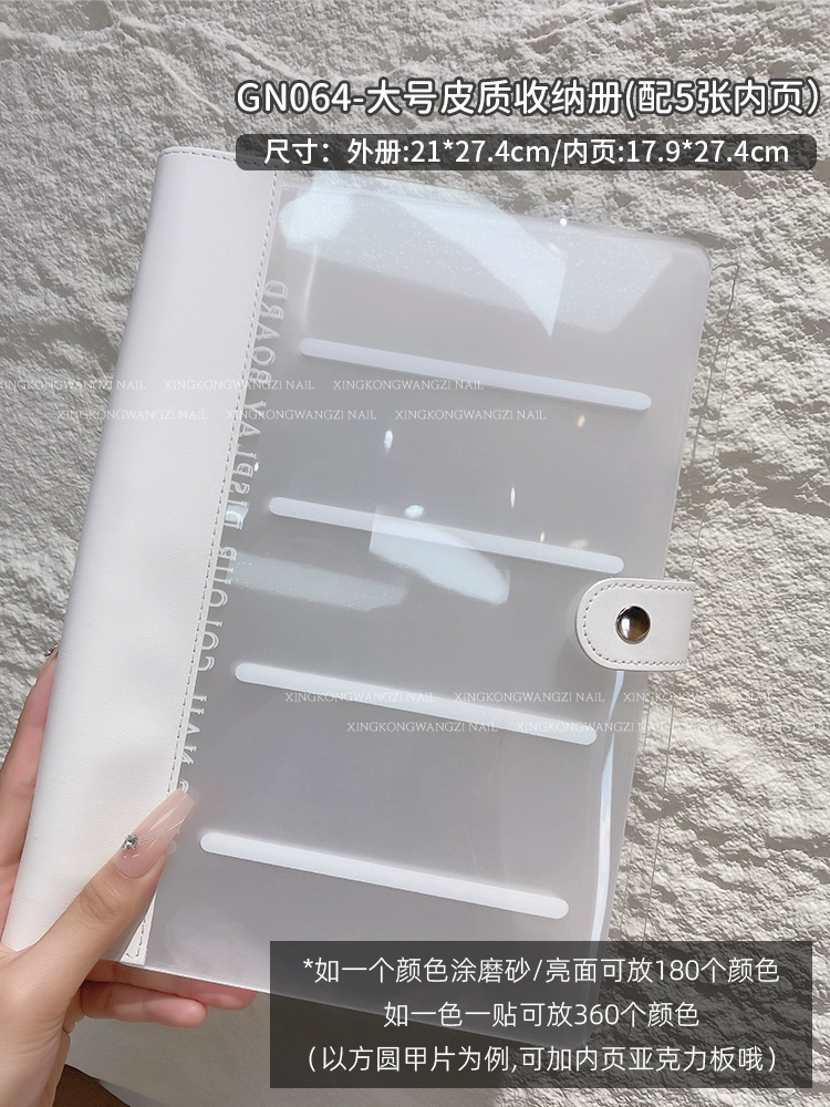 Wearable Nail Storage Book, Nail Art Style Work Display Color Card Book, Transparent Dust-proof Pattern Nail Piece Leather Organizing Book