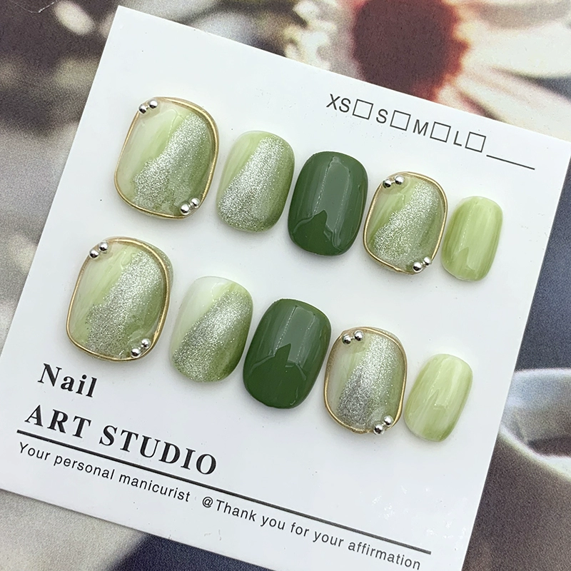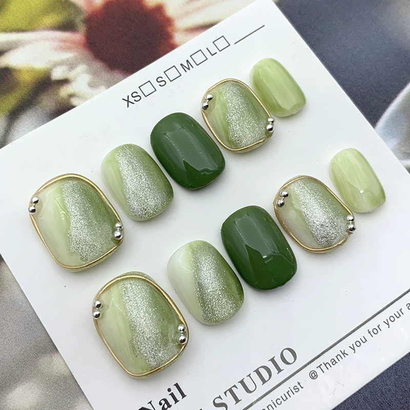 | nameOriginal | Wearing manicure hand-made green gradient high-end manicure |