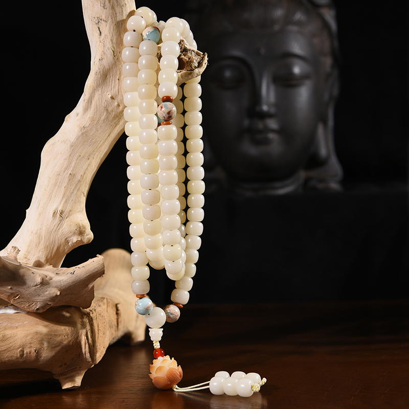 | nameOriginal | Weathering White Jade Bodhi root bracelet 108 high-density bracelet female hand-held Buddha beads Wenwan necklace 10*8m Apple beads |