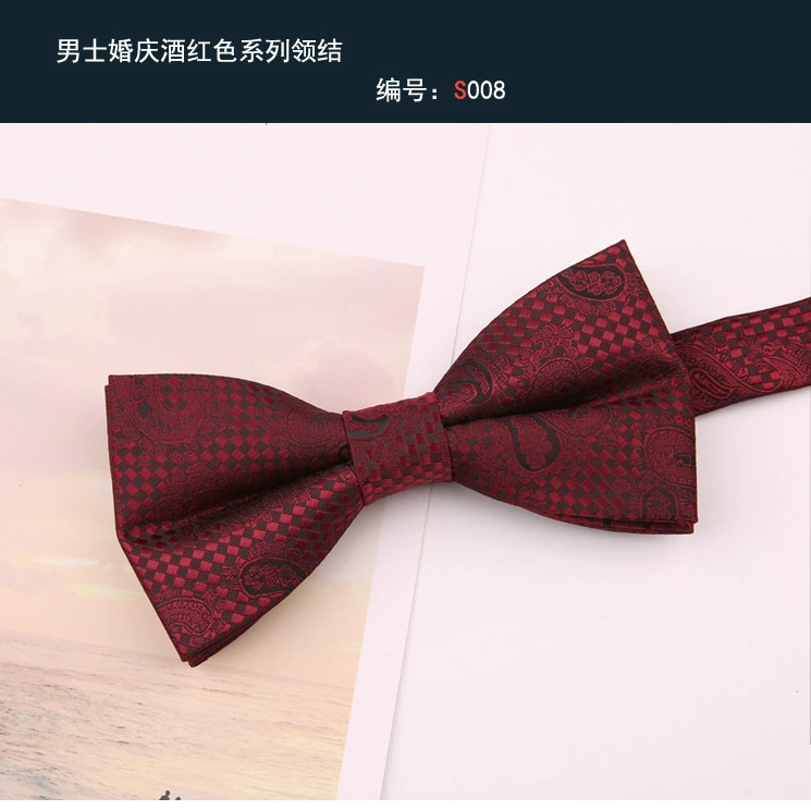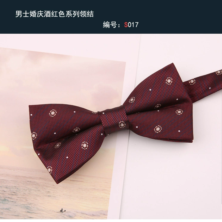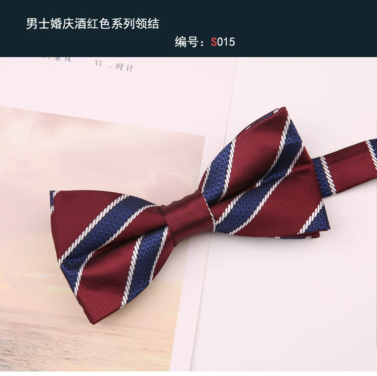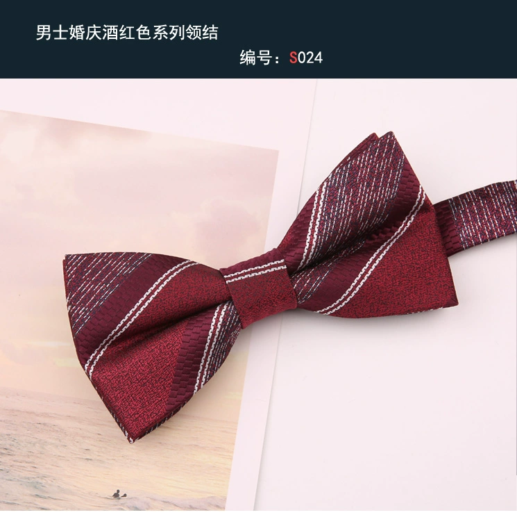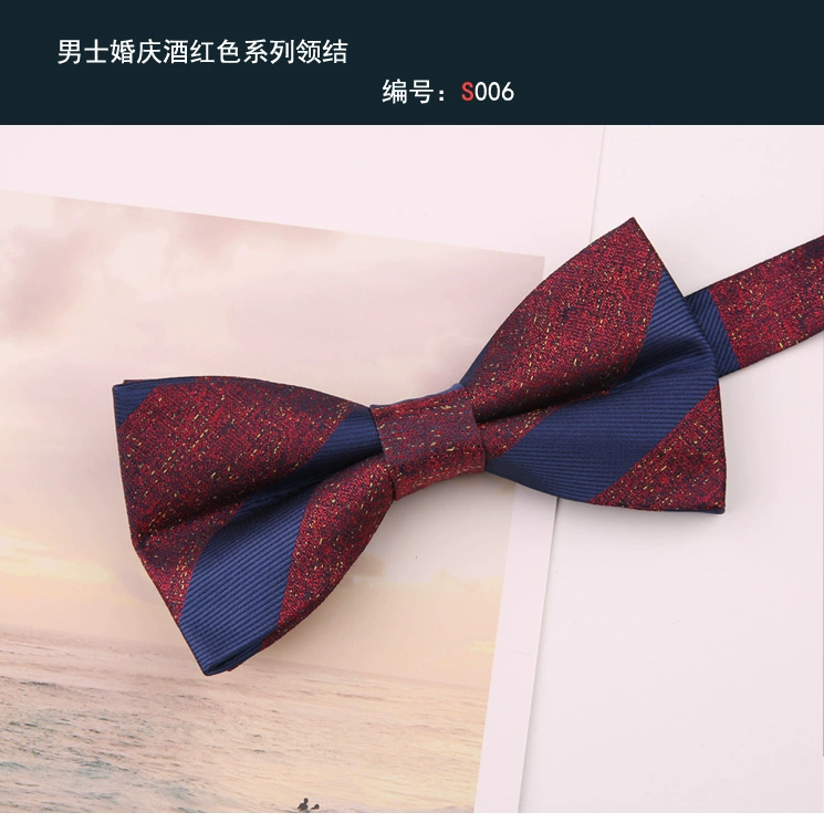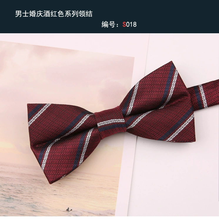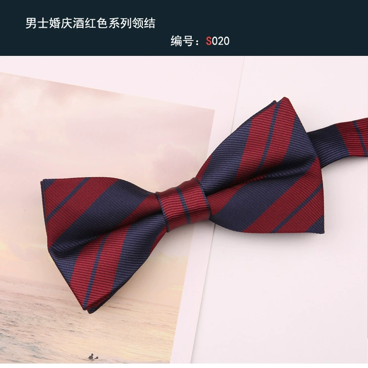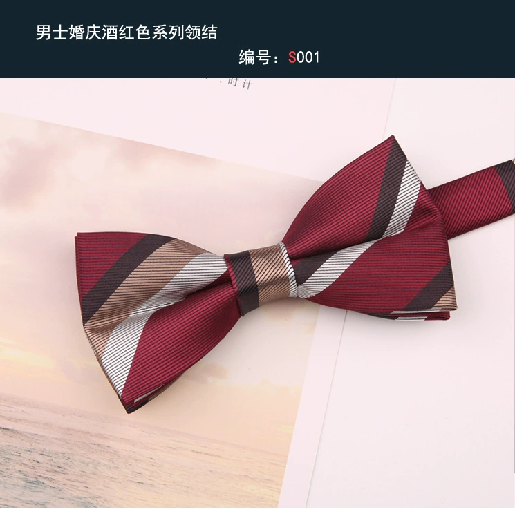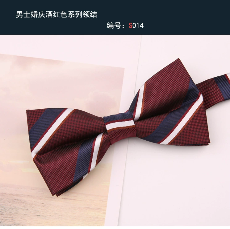 | nameOriginal | Wedding business polyester burgundy casual striped bow tie |