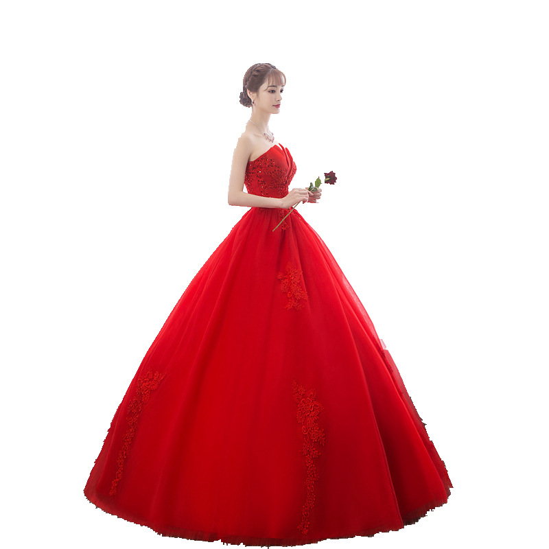 | nameOriginal | Wedding dress 2024 new red wedding dress bride Princess Dream flower bud tube top autumn and summer high waist gauze skirt for women |