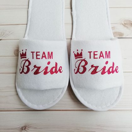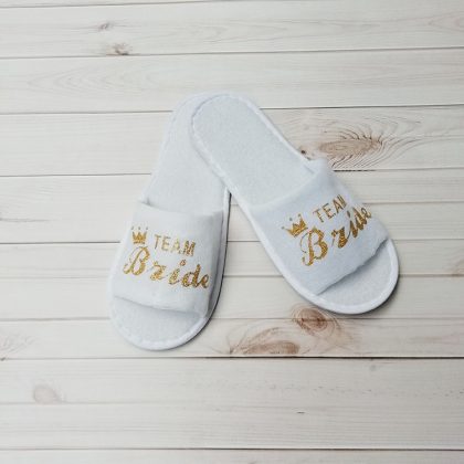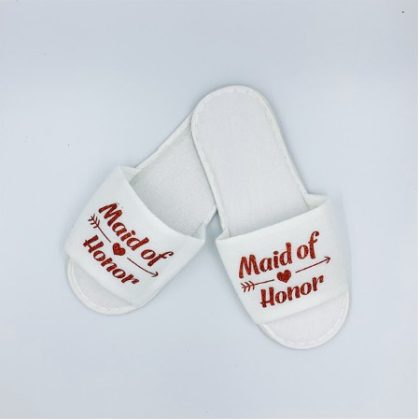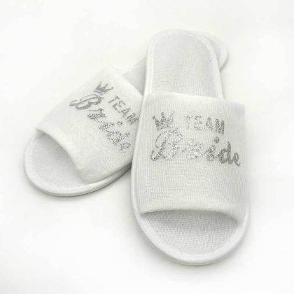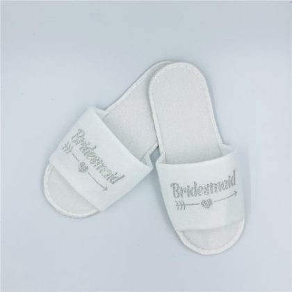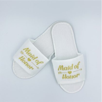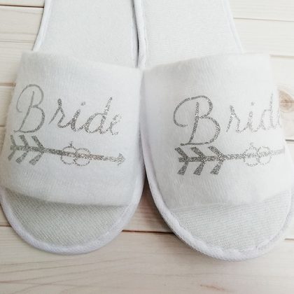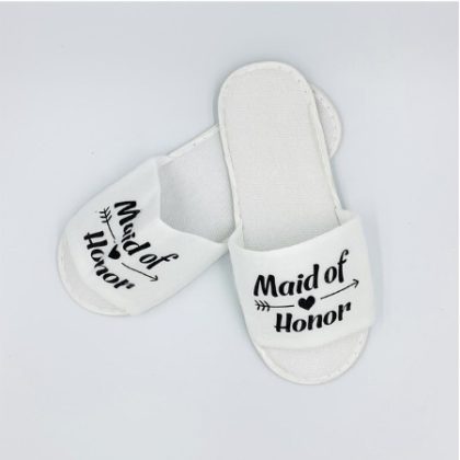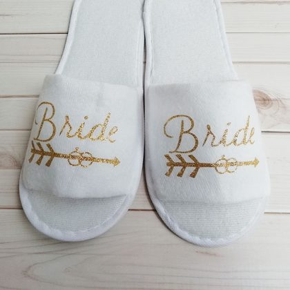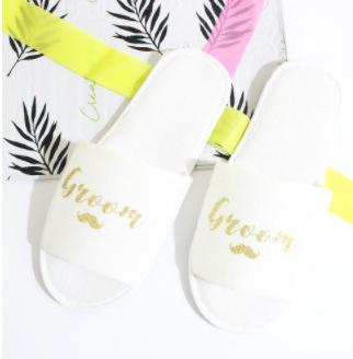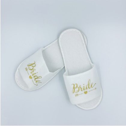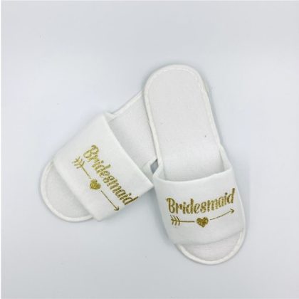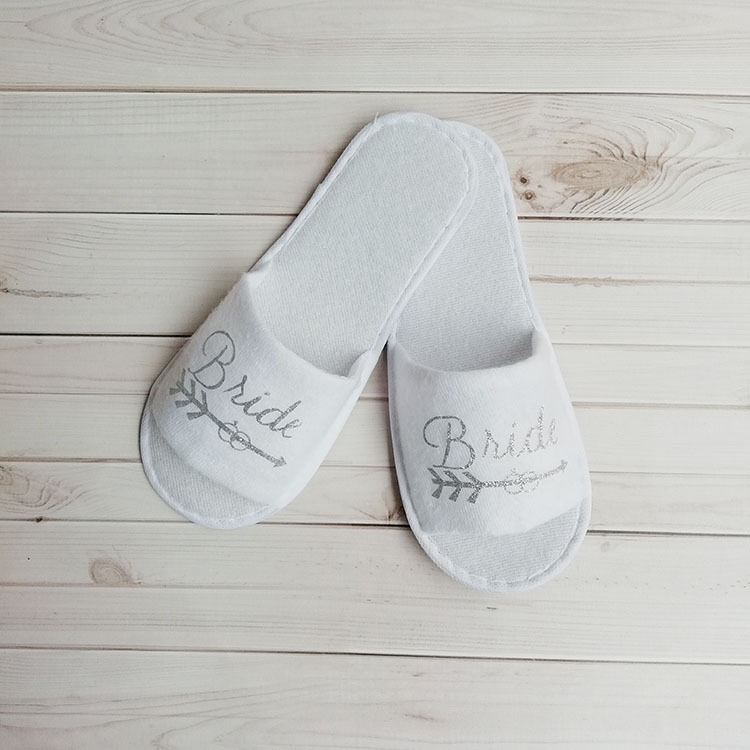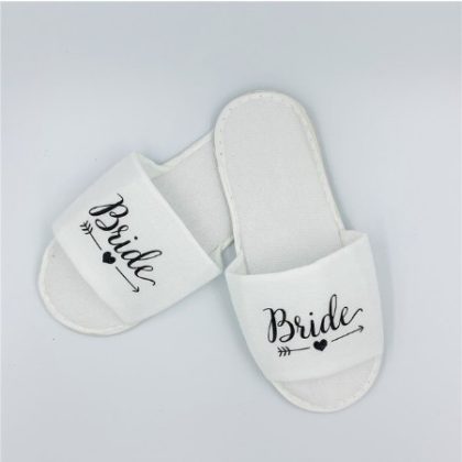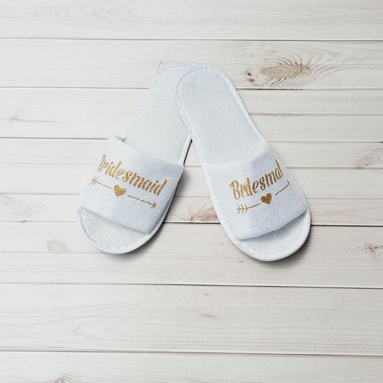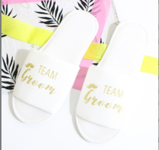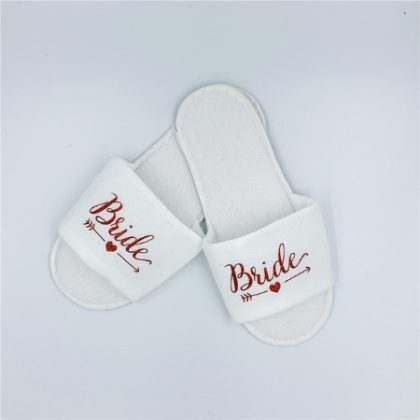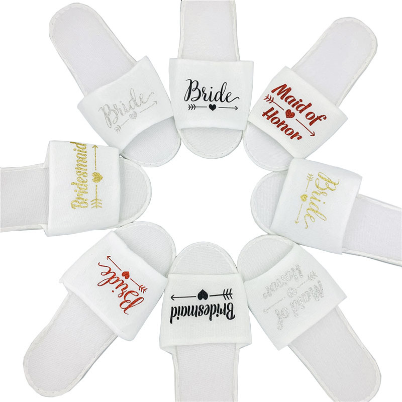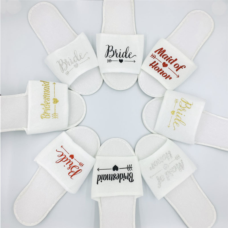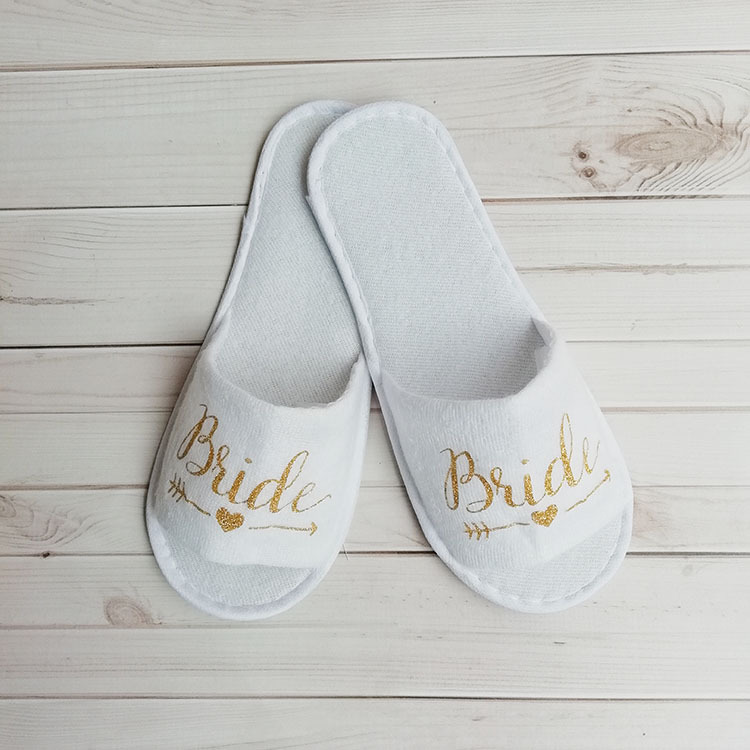 | nameOriginal | Wedding pajamas party plush open-toe slippers bride bronzing letters hotel disposable |