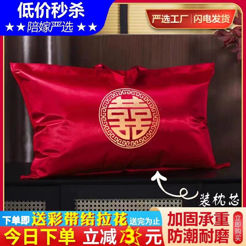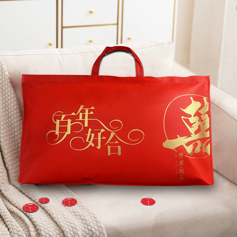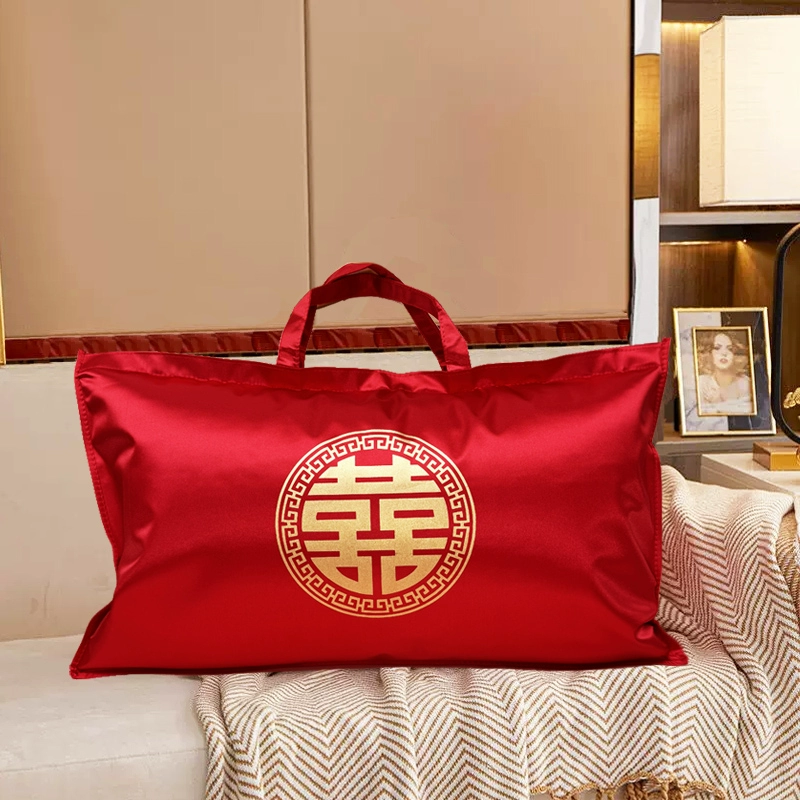 | nameOriginal | Wedding pillow storage bag, dowry wedding quilt pillow core packaging bag, red wedding quilt satin Oxford spinning handbag |