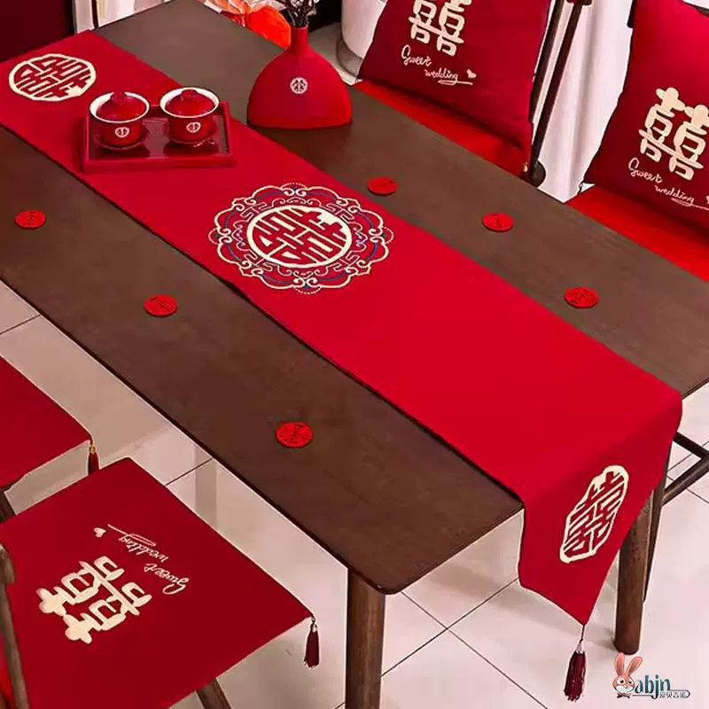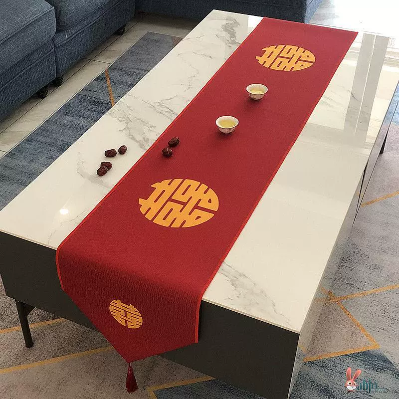 | nameOriginal | Wedding room decoration table decoration embroidered happy word tablecloth Chinese style engagement coffee table long cover cloth wedding red table flag |