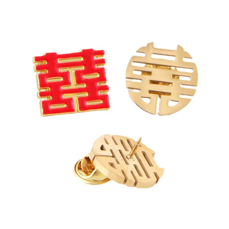 | nameOriginal | Wedding Xi character metal brooch red double happiness Round Square bridegroom bride love badge engagement license photo |