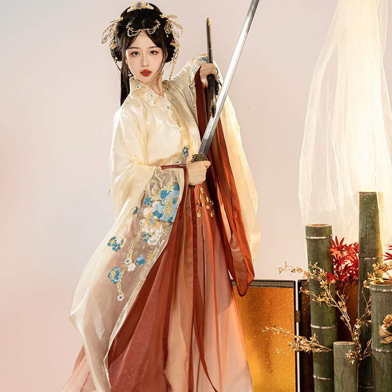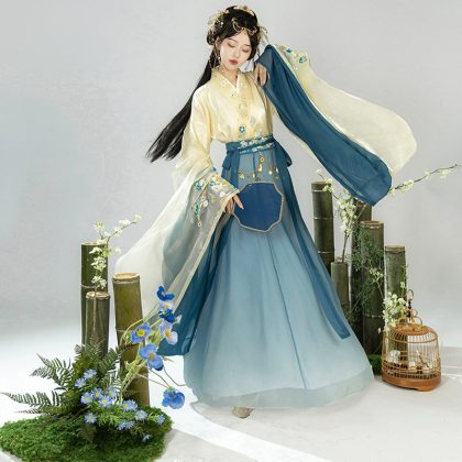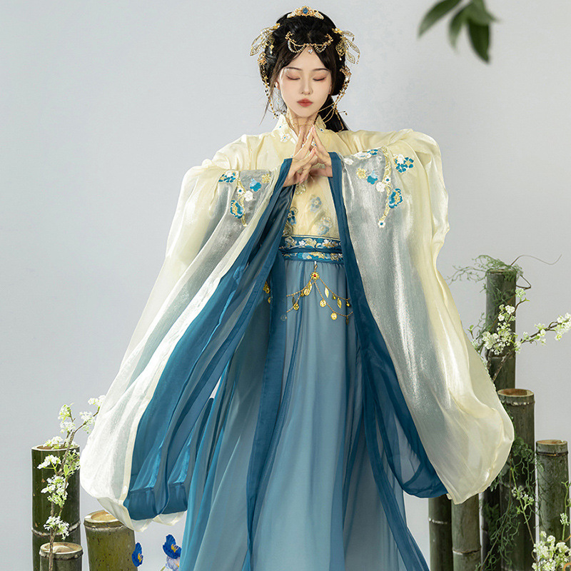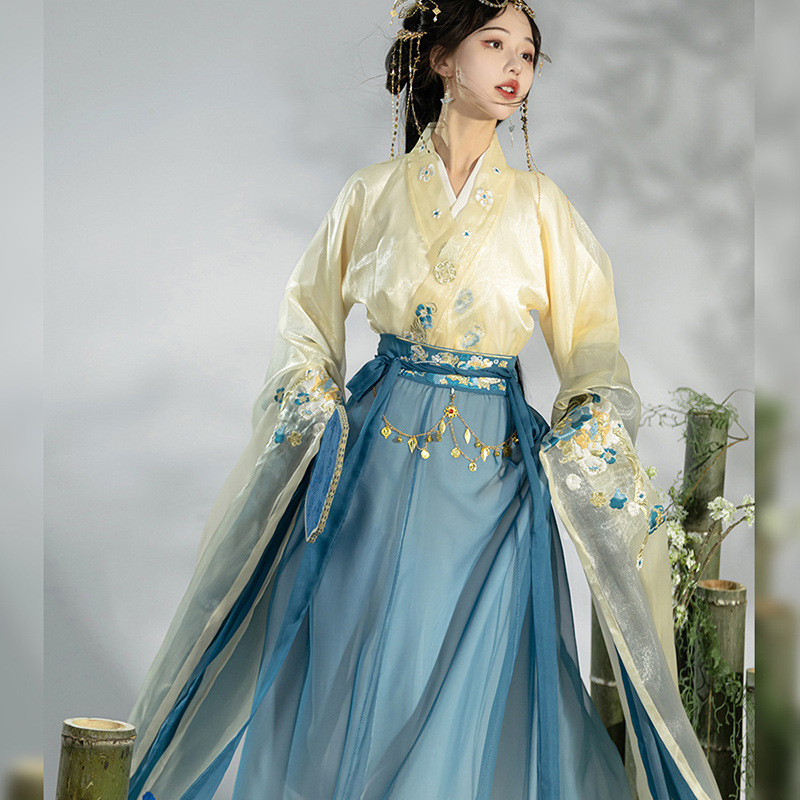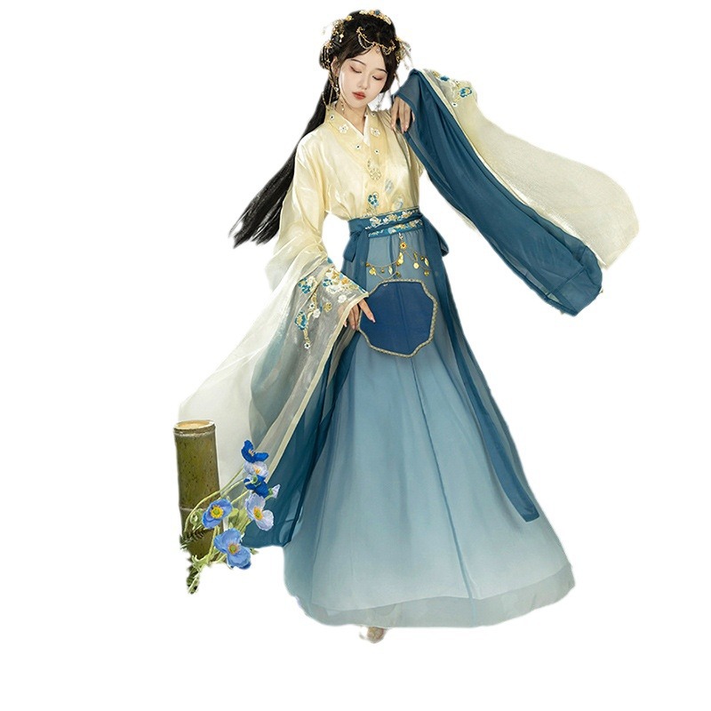 Wei Jin Style Hanfu Cross Collar Wide Sleeve Waist-length Skirt suit Northern and Southern Dynasties Embroidered Broken Skirt Immortal Style Improved Daily Hanfu